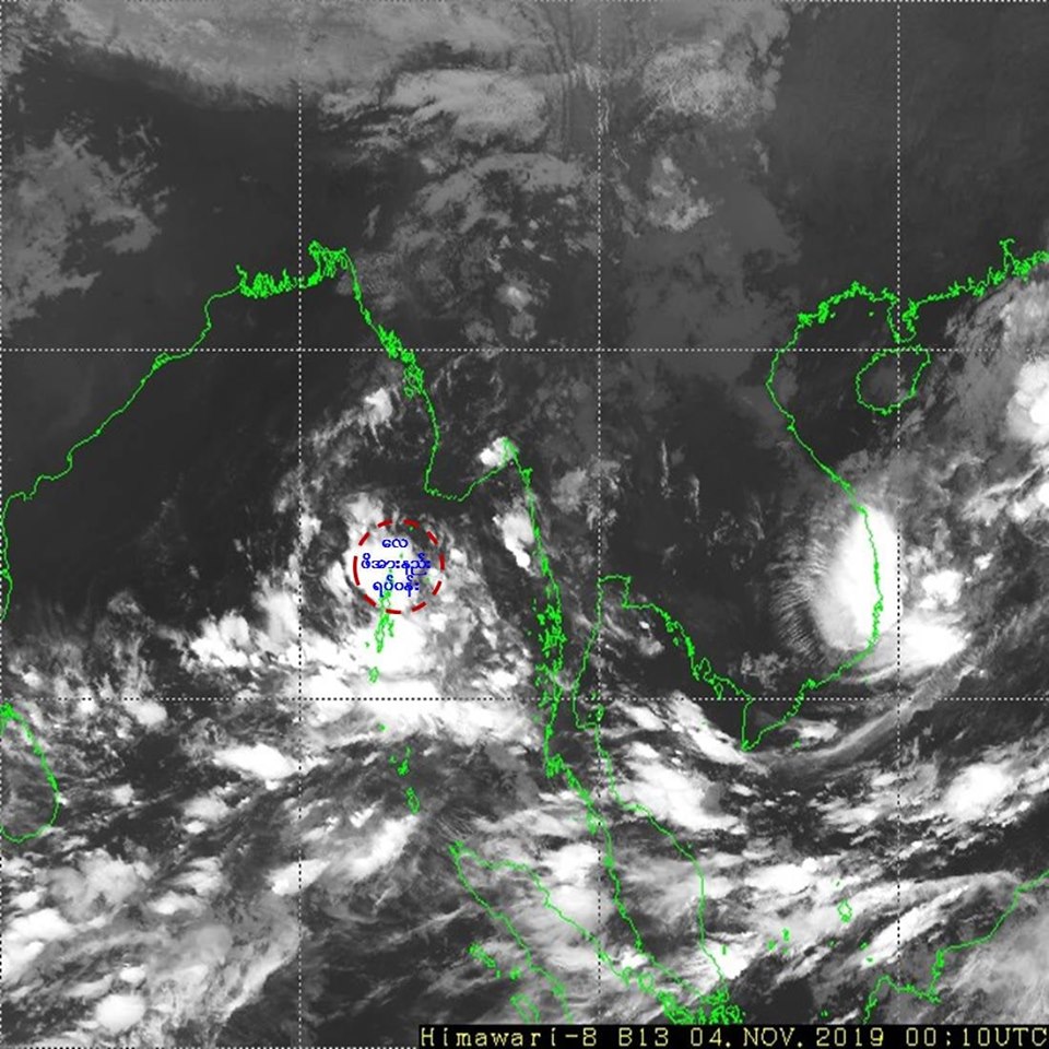 “ယနေ့မြန်မာစံတော်ချိန် (၀၆:၃၀)နာရီအချိန် တိုင်းထွာချက်များအရ ကပ္ပလီပင်လယ်ပြင်မြောက်ပိုင်းတွင် လေဖိအားနည်းရပ်ဝန်းတစ်ခု ဖြစ်ပေါ်နေပါသည်။ အဆိုပါ လေဖိအားနည်းရပ်ဝန်းသည် အနောက်- အနောက်မြောက်ဘက်သို့ရွေ့လျားကာ ပိုမိုအားကောင်းလာနိုင်ပြီး နောက်(၄၈)နာရီအတွင်း ဘင်္ဂလားပင်လယ်အော်အရှေ့ အလယ်ပိုင်းတွင် မုန်တိုင်းငယ် (Depression) အဖြစ်သို့ ရောက်ရှိလာနိုင်ပါသည်။”