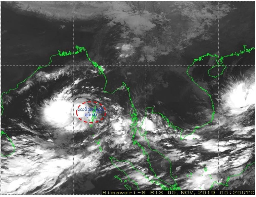 “ယနေ့မြန်မာစံတော်ချိန် (၀၆:၃၀)နာရီအချိန် တိုင်းထွာချက်များအရ ကပ္ပလီပင်လယ်ပြင် မြောက်ပိုင်းတွင် ဖြစ်ပေါ်နေသော လေဖိအားနည်းရပ်ဝန်းသည် ဆက်လက်တည်ရှိနေပါသည်။ အဆိုပါလေဖိအားနည်းရပ်ဝန်းသည် အနောက်မြောက်ဘက်သို့ ရွေ့လျားကာ ပိုမိုအား ကောင်းလာနိုင်ပြီး နောက်(၆)နာရီအတွင်း ဘင်္ဂလားပင်လယ်အော်အရှေ့အလယ်ပိုင်းတွင် မုန်တိုင်းငယ် (Depression) အဖြစ်သို့ ရောက်ရှိလာနိုင်ပါသည်။”