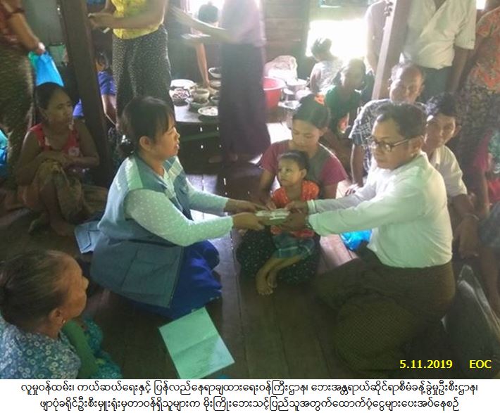 လူမှုဝန်ထမ်း၊ ကယ်ဆယ်ရေးနှင့် ပြန်လည်နေရာချထားရေးဝန်ကြီးဌာန၊ ဘေးအန္တရာယ်ဆိုင်ရာစီမံခန့်ခွဲမှုဦးစီး ဌာန၊ ဖျာပုံခရိုင်ဦးစီးမှူးရုံးမှတာဝန်ရှိသူများသည် ဒေးဒရဲမြို့နယ်၊ နောက်ပြန်တိုးကျေးရွာအုပ်စု၊ ကျုံဓမင်း ရှေ့ဘက်ကွင်း၌ (၂၇-၁၀-၂၀၁၉) ရက်နေ့တွင်ဖြစ်ပွားခဲ့သော မိုးကြိုးဘေးကြောင့် တောင်သူ (၄) ဦး ဘေးသင့်ခဲ့ပါသည်။ အဆိုပါဘေးသင့်ပြည်သူများထဲမှ ပြည်သူ(၁)ဦးသည် ဖျာပုံပြည်သူ့ဆေးရုံကြီး၌ ဆေးကုသမှု ခံယူနေရစဉ် (၃၀-၁၀-၂၀၁၉)ရက်နေ့တွင် သေဆုံးခဲ့၍ သေဆုံးထောက်ပံ့ငွေ (၃၀၀,၀၀၀/-)ကျပ်အား (၅-၁၁-၂၀၁၉) ရက်နေ့တွင် သွားရောက်ထောက်ပံ့ခဲ့ပါကြောင်း သတင်းရရှိပါသည်။