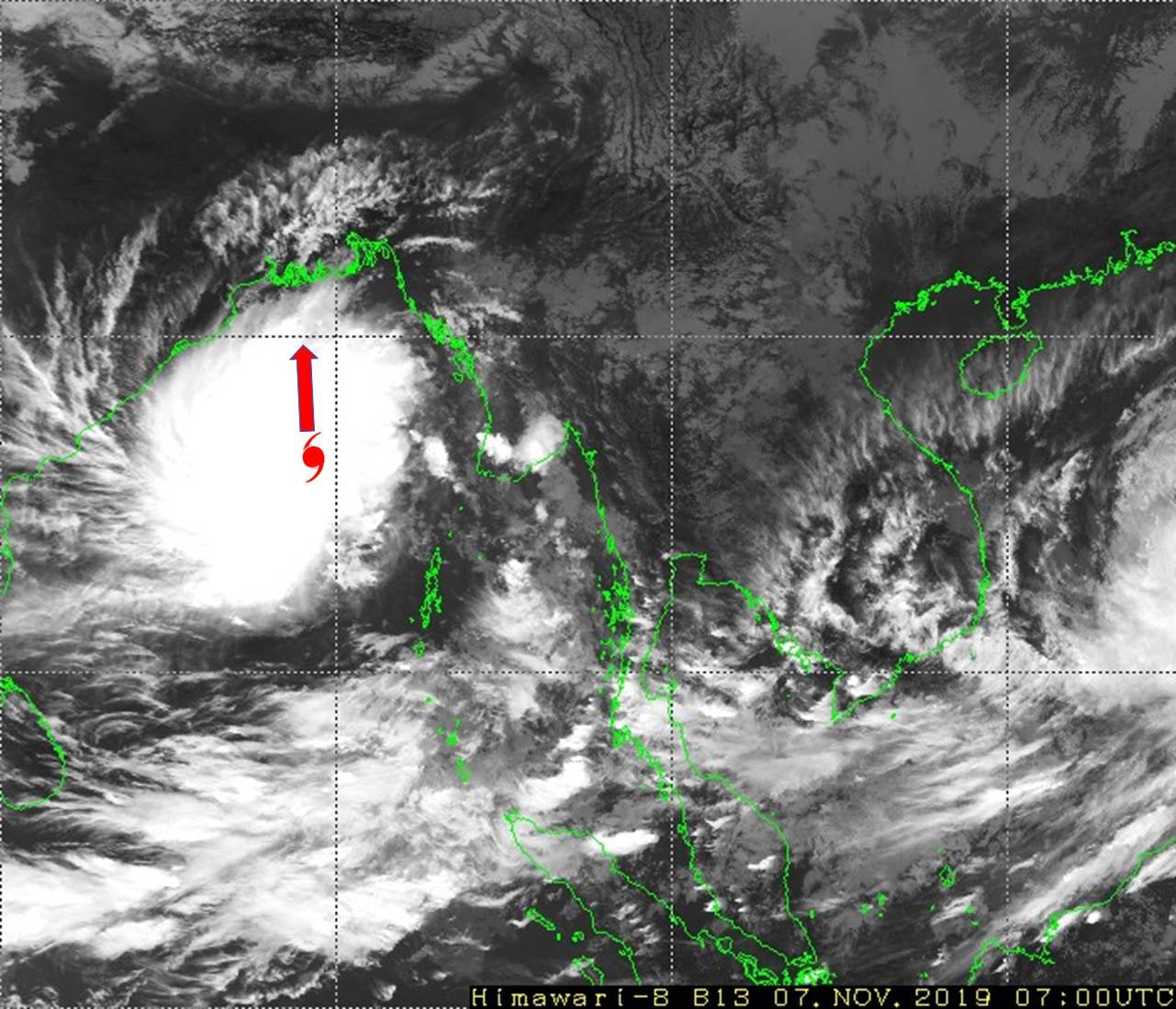 (၂) ဆိုင်ကလုန်းမုန်တိုင်း “ဘာဘ်ဘယ်” (BULBUL) ၏ လက်ရှိအခြေအနေမှာ မြန်မာနိုင်ငံ ဘက်သို့ ဦးတည်ရွေ့လျားမည့် အခြေအနေမရှိသေးသဖြင့် အဝါရောင်အဆင့်ဟု သတ်မှတ်ပါသည်။