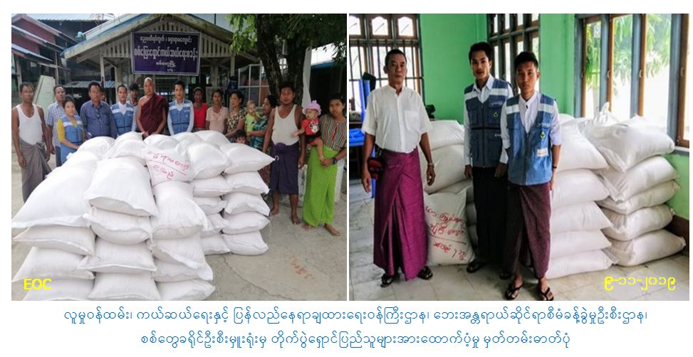 လူမှုဝန်ထမ်း၊ကယ်ဆယ်ရေးနှင့် ပြန်လည်နေရာချထားရေးဝန်ကြီးဌာန၊ ဘေးအန္တရာယ်ဆိုင်ရာ စီမံခန့်ခွဲမှုဦးစီးဌာန၊ စစ်တွေခရိုင်ဦးစီးမှုရုံးမှ တာဝန်ရှိသူများသည် စစ်တွေမြို့နယ် ဓမ္မာရာမဘုန်းကြီးကျောင်းမှ တိုက်ပွဲရှောင် အိမ်ထောင်စု(၅၈)၊ လူဦးရေ(၂၀၆)ဦး၊ ပုဏ္ဏားကျွန်းမြို့နယ် ဖားကြွယ်ကျေးရွာ ဘုန်းတော်ကြီးကျောင်းမှ တိုက်ပွဲရှောင် အိမ်ထောင်စု(၃၆)စု၊ လူဦးရေ( ၂၀၇ )ဦး စုစုပေါင်း အိမ်ထောင်စု (၉၄)စု၊ လူဦးရေ(၄၁၃)ဦးတို့အတွက် ဆန်ရိက္ခာ(၁)လစာ (၁၂၈)အိတ်၊ (၂၅)ပြည်၊ (၄)ဗူးတို့အား (၈-၁၁-၂၀၁၉)ရက်နေ့ တွင် သွားရောက်ထောက်ပံ့ခဲ့ပါကြောင်း သတင်းရရှိပါသည်။