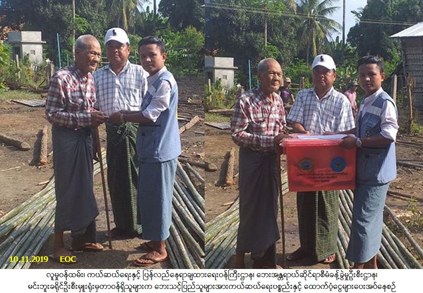 လူမှုဝန်ထမ်း၊ ကယ်ဆယ်ရေးနှင့် ပြန်လည်နေရာချထားရေးဝန်ကြီးဌာန၊ ဘေးအန္တရာယ်ဆိုင်ရာစီမံခန့်ခွဲမှုဦးစီး ဌာန၊ မင်းဘူးခရိုင်ဦးစီးမှူးရုံးမှတာဝန်ရှိသူများသည် မင်းဘူးမြို့နယ်၊ ကျောက်တန်းကျေးရွာ၊ အုန္နဲတန်းရပ်၌ (၉-၁၁-၂၀၁၉) ရက်နေ့တွင် ဖြစ်ပွားခဲ့သော မီးဘေးကြောင့် မီးဘေးသင့်အိမ်ခြေ(၁)လုံး၊ အိမ်ထောင်စု(၁)စုမှ လူဦးရေ (၃) ဦးဘေးသင့်ခဲ့ရာ အဆိုပါဘေးသင့်ပြည်သူများအတွက် အိမ်ဆောက်ပစ္စည်းဖိုးထောက်ပံ့ငွေ (၁၀၀,၀၀၀/-) ကျပ်၊ ဆန်ရိက္ခာ(၇)ရက်စာဖိုးထောက်ပံ့ငွေ (၆,၃၀၀/-) ကျပ်နှင့် ကယ်ဆယ်ရေးပစ္စည်း(၁၆)မျိုး အိမ်ထောင်စု(၁)စုစာတို့ကို (၁၀-၁၁-၂၀၁၉) ရက်နေ့၊ (၁၅:၀၀) အချိန်တွင် ဘေးသင့်ပြည်သူများလက်ဝယ်အရောက် ထောက်ပံ့ပေးအပ်ခဲ့ပါကြောင်း သတင်းရရှိပါသည်။