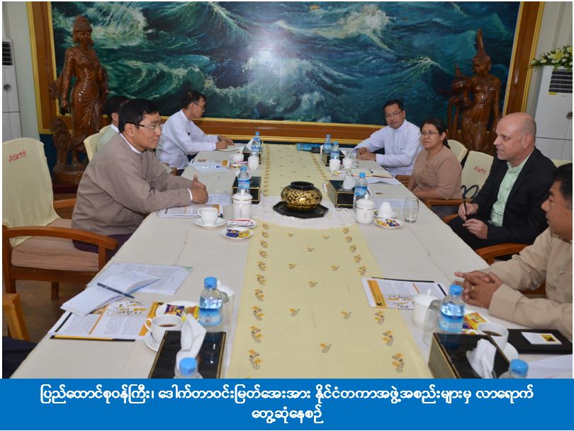 အလားတူ(၁၅:၀၀) နာရီအချိန်တွင် ပြည်ထောင်စုဝန်ကြီးအား Nippon Foundation မှ Executive Director ဖြစ်သူ Mr.Shuichi OHNO ဦးဆောင်သောအဖွဲ့မှ လာရောက်တွေ့ဆုံခဲ့ပါသည်။ ထိုသို့တွေ့ဆုံရာ၌ ဝန်ကြီးဌာနနှင့် နီပွန်ဖောင်ဒေးရှင်းတို့ အတူတကွ ပူးပေါင်းဆောင်ရွက်ခဲ့သည့် မြန်မာနိုင်ငံမသန်စွမ်းသူများအတွက် အနုပညာပွဲတော်အပြင် မြန်မာနိုင်ငံတွင် မသန်စွမ်းသူလူငယ်များသို့ ပညာသင်ကြားရေးနှင့်အသက်မွေးဝမ်းကျောင်း ပညာသင်ကြားမှုကိစ္စရပ်များ၊ မသန်စွမ်းသူများဘီးတပ် ကုလားထိုင်နှင့် ခြေတု၊ လက်တုများ တပ်ဆင်ပေးမည့်စီမံကိန်းဆောင်ရွက်ပေးမည့်ကိစ္စရပ်များ၊ ရက်(၁၀၀) စီမံချက်တွင်ပါဝင်သည့် မသန်စွမ်းသူများ၏ အခွင့်အရေးဆိုင်ရာ ဥပဒေနှင့် နည်းဥပဒေပြင်ဆင်ဆောင်ရွက်မည့်ကိစ္စရပ်များ၊ မသန်စွမ်းသူများအတွက် အသက်မွေးဝမ်းကျောင်းပညာရပ်များ သင်ကြားလေ့ကျင့်ပေးရေးအတွက် လိုအပ်သောသင်တန်းများကို အစိုးရ၊ အစိုးရမဟုတ်သော အဖွဲ့အစည်း၊ ပုဂ္ဂလိကနှင့်နိုင်ငံအချင်းချင်း ပူးပေါင်းဆောင်ရွက်မှုဆိုင်ရာများကို ရင်းနှီး ပွင့်လင်းစွာ ဆွေးနွေးခဲ့ကြပါသည်။