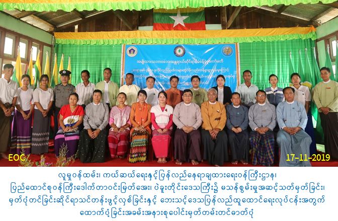 ယင်းနောက် တောင်ခင်ကျေးရွာသို့ရောက်ရှိကြပြီး မိုးသည်းထန်စွာရွာသွန်းမှုများကြောင့် ပျက်စီးခဲ့သည့် သူဌေးကုန်း − တောင်ခင်ကျေးရွာချင်းဆက်လမ်းကို ဂဝံလမ်းခင်းခြင်းလုပ်ငန်း ဆောင်ရွက်နိုင်ရန် အမျိုးသားသဘာဝဘေးအန္တရာယ်ဆိုင်ရာစီမံခန့်ခွဲမှုကော်မတီက ထောက်ပံ့ ပေးအပ်ပွဲသို့ တက်ရောက်ခဲ့ကြပြီး ပြည်ထောင်စုဝန်ကြီးက ဝန်ကြီးဌာနအနေဖြင့် ဘေးအန္တရာယ်နှင့် ပတ်သက်၍ လူ့ကြောင့်ဖြစ်သောဘေး၊ သဘာဝကြောင့်ဖြစ်သောဘေးများ အတွက် အလျင်အမြန်တုန့်ပြန်ခြင်းနှင့် ပြန်လည်ထူထောင်ရေး လုပ်ငန်းများကို ဆောင်ရွက် လျက်ရှိကြောင်း၊ တစ်နိုင်ငံလုံးအတိုင်းအတာဖြင့် သာတူညီမျှဖြစ်အောင် ဆောင်ရွက်ပေး ရပါကြောင်း၊ ဦးစားပေးအဆင့်များဖြင့် ဆောင်ရွက်လျက်ရှိရာ ယနေ့ တောင်ခင်ကျေးရွာ ချင်းဆက်လမ်းအတွက် အစိုးရထံမှ ခွင့်ပြုရန်ပုံငွေရရှိပြီးဖြစ်ကြောင်း၊ သဘာဝဘေးနှင့် ပတ် သက်၍ အမျိုးသားသဘာဝဘေးအန္တရာယ်ဆိုင်ရာစီမံခန့်ခွဲမှု အမျိုးသားကော်မတီကို ဒုတိယသမ္မတ (၂) က ဦးဆောင်၍ စီမံခန့်ခွဲလျက်ရှိပါကြောင်း၊ ပြည်သူများပူးပေါင်း ပါဝင်မှု အရေးကြီးပါကြောင်း၊ ယခုခွင့်ပြုချက်ရရှိသော ကျေးရွာချင်းဆက်လမ်းကို အကျိုးရှိစွာအသုံး ချပြုနိုင်ရန်နှင့် ရာသီမရွေးသွားလာနိုင်သောလမ်းအဖြစ် ရေရှည်တည်တံ့ခိုင်မြဲစေရန် ဌာနဆိုင်ရာ တာဝန်ရှိသူများနှင့်အတူ ရပ်မိရပ်ဖ ပြည်သူလူထုများက ပူးပေါင်းဆောင်ရွက် ပေးကြစေလို ကြောင်းနှင့် အစိုးရ၏ စီမံကိန်းများသည် ရေရှည်အကျိုးကိုမျှော်မှန်း၍ ဆောင်ရွက်ခြင်းဖြစ်ရာ ရှေ့ဆက်ဆောင်ရွက်ကြရမည့် လုပ်ငန်းများတွင်လည်း ပြည်သူများက ဆက်လက်ပူးပေါင်း ပါဝင်ပေးကြရန် တိုက်တွန်းပါကြောင်း ပြောကြားခဲ့ပါသည်။
