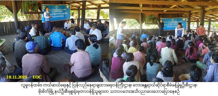 လူမှုဝန်ထမ်း၊ ကယ်ဆယ်ရေးနှင့် ပြန်လည်နေရာချထားရေးဝန်ကြီးဌာန၊ ဘေးအန္တရာယ်ဆိုင်ရာစီမံခန့်ခွဲမှုဦးစီး ဌာန၊ မိုးမိတ်မြို့နယ်ဦးစီးမှူးရုံးမှတာဝန်ရှိသူများသည် မိုးမိတ်မြို့နယ်မီးသတ်ဦးစီးဌာနနှင့် ပူးပေါင်း၍ မိုးမိတ်မြို့နယ်၊ လက်ခုပ်ပင်ကျေးရွာအုပ်စု၊ လက်ခုပ်ပင်ကျေးရွာ၌ (၁၈-၁၁-၂၀၁၉) ရက်နေ့၊ မွန်းတည့် (၁၂:၀၀)နာရီအချိန်မှ မွန်းလွဲ(၁၃:၀၀)နာရီအချိန်အထိ ငလျင်ဘေးနှင့် အခြားသောသဘာဝဘေးအန္တရာယ်များ နှင့်စပ်လျဉ်း၍ အသိပညာပေးဟောပြောခဲ့ရာ ကျေးရွာနေပြည်သူ (၂၀၀)ဦးခန့် တက်ရောက်ခဲ့ပါကြောင်း သတင်းရရှိပါသည်။