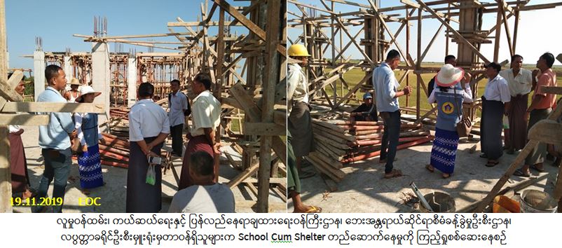 လူမှုဝန်ထမ်း၊ ကယ်ဆယ်ရေးနှင့် ပြန်လည်နေရာချထားရေးဝန်ကြီးဌာန၊ ဘေးအန္တရာယ်ဆိုင်ရာစီမံခန့်ခွဲမှုဦးစီး ဌာန၊ လပွတ္တာခရိုင်ဦးစီးမှူးရုံးမှတာဝန်ရှိသူများသည် မြို့နယ်ဆောက်လုပ်ရေးကြီးကြပ်မှုကော်မတီအဖွဲ့နှင့်အတူ (၁၉-၁၁-၂၀၁၉) ရက်နေ့၊ (၀၉:၀၀)အချိန်တွင် လပွတ္တာမြို့နယ်၊ သပြုကုန်းကျေးရွာအုပ်စု၊ ရေဝေကျေးရွာ၌ အမျိုးသားသဘာဝဘေးအန္တရာယ်ဆိုင်ရာစီမံခန့်ခွဲမှုကော်မတီရန်ပုံငွေဖြင့် တည်ဆောက်လျက်ရှိသော School Cum Shelter (၅၀%) တည်ဆောက်ပြီးစီးမှုအခြေအနေကို သွားရောက်စစ်ဆေးကြည့်ရှုခဲပါကြောင်း သတင်းရရှိပါသည်။