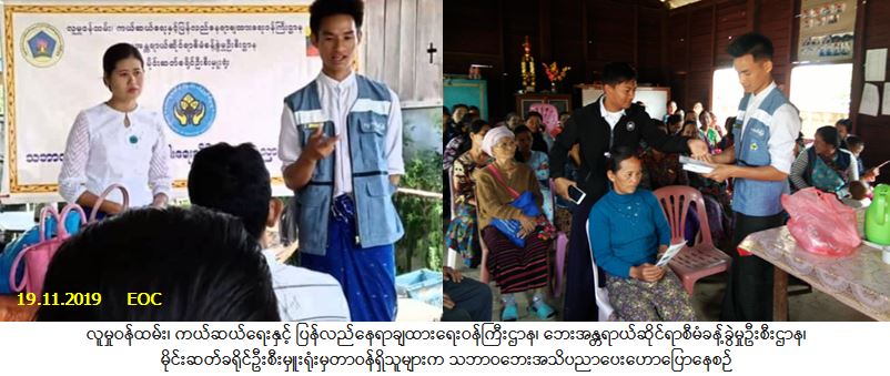 လူမှုဝန်ထမ်း၊ ကယ်ဆယ်ရေးနှင့် ပြန်လည်နေရာချထားရေးဝန်ကြီးဌာန၊ ဘေးအန္တရာယ်ဆိုင်ရာစီမံခန့်ခွဲမှုဦးစီး ဌာန၊ မိုင်းဆတ်ခရိုင်ဦးစီးမှူးရုံးမှတာဝန်ရှိသူများသည် (၁၉-၁၁-၂၀၁၉) ရက်နေ့၊ နံနက် (၁၀:၀၀) နာရီအချိန်တွင် မိုင်းခုတ်မြို့နယ်၊ လွယ်ဆောင်းကျေးရွာအုပ်စု၊ ဘာထန်ကျေးရွာ၌ သဘာဝဘေးအန္တရာယ်ဆိုင်ရာ အသိပညာပေးဟောပြောပွဲ ကျင်းပပြုလုပ်ခဲ့ရာ ကျေးရွာသူ/သား (၇၀)ဦးခန့်တက်ရောက်ခဲ့ပြီး တက်ရောက် လာသူများအား လက်ကမ်းစာစောင်များ ဖြန့်ဝေခဲ့ပါကြောင်း သတင်းရရှိပါသည်။