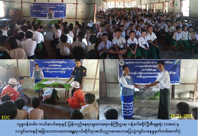 လူမှုဝန်ထမ်း၊ ကယ်ဆယ်ရေးနှင့် ပြန်လည်နေရာချထားရေးဝန်ကြီးဌာန၊ ဘေးအန္တရာယ် ဆိုင်ရာစီမံခန့်ခွဲမှုဦးစီးဌာန၊ ဂန့်ဂေါခရိုင်ဦးစီးမှူးရုံးမှတာဝန်ရှိသူများသည် ခရိုင်ပြန်ကြားရေးနှင့် ပြည်သူ့ဆက်ဆံရေးဦးစီးဌာန၊ ခရိုင်စားသုံးသူရေးရာဦးစီးဌာန၊ မြို့နယ်မီးသတ်ဦးစီးဌာနတို့ဖြင့် ပူးပေါင်း၍ ဂန့်ဂေါခရိုင်၊ ဂန့်ဂေါမြို့နယ်၊ ဇီးပြားကျေးရွာအုပ်စု၊ ဇီးပြားကျေးရွာ၊ အခြေခံပညာ အလယ်တန်းကျောင်းခန်းမ၌ (၁၉-၁၁-၂၀၁၉) ရက်နေ့ (၁၃:၀၀) နာရီမှ (၁၅:၀၀) နာရီအထိ ကျောင်းသား/သူ (၉၁) ဦး၊ ဆရာ/ဆရာမ (၁၂) ဦး၊ ကျေးရွာသူ/သား (၅၅) ဦး၊ စုစုပေါင်း (၁၅၈) ဦး တို့အား ငလျင်ဘေးနှင့်အခြားသဘာဝဘေးအန္တရာယ်ဆိုင်ရာ အသိပညာပေးဟောပြောပွဲ ပြုလုပ်ခဲ့ပါကြောင်းနှင့် အသိပညာပေးလက်ကမ်းစာစောင်များဖြန့်ဝေပေးခဲ့ပါကြောင်း သတင်း ရရှိပါသည်။