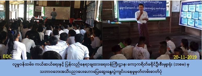 လူမှုဝန်ထမ်း၊ ကယ်ဆယ်ရေးနှင့် ပြန်လည်နေရာချထားရေးဝန်ကြီးဌာန၊ ဘေးအန္တရာယ်ဆိုင်ရာ စီမံခန့်ခွဲမှုဦးစီးဌာန၊ ကော့ကရိတ်ခရိုင်ဦးစီးမှူးရုံးမှ တာဝန်ရှိသူများသည် (၂၀-၁၁-၂၀၁၉) ရက်နေ့၊ နေ့လည် (၁၁:၀၀) ချိန်တွင် ကော့ကရိတ်မြို့နယ်၊ မြောက်ကြာအင်းကျေးရွာရှိ၊ အ.မ.က (မူလွန်) ကျောင်း၌ ဆရာ/ ဆရာမများ၊ ကျောင်းသား/ သူများ စုစုပေါင်း (၁၁၀) ဦးတို့အား သဘာဝဘေးအသိပညာပေးဟောပြောပွဲကျင်းပပြုလုပ်ခဲ့ပါကြောင်းသတင်းရရှိပါသည်။
