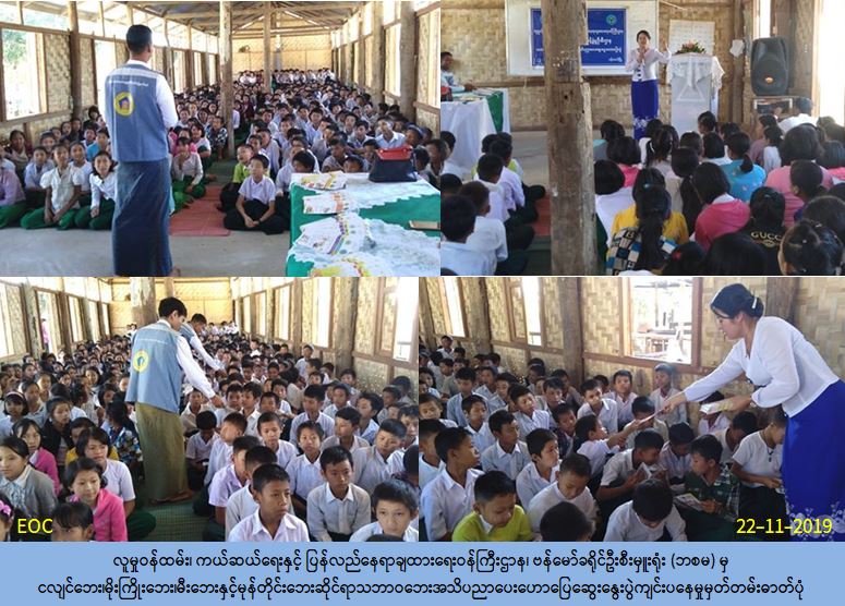 လူမှုဝန်ထမ်း၊ ကယ်ဆယ်ရေးနှင့် ပြန်လည်နေရာချထားရေးဝန်ကြီးဌာန၊ ဘေးအန္တရာယ်ဆိုင်ရာ စီမံခန့်ခွဲမှုဦးစီးဌာန၊ ဗန်းမော်ခရိုင်ဦးစီးမှူးရုံးမှတာဝန်ရှိသူများသည် (၂၂-၁၁-၂၀၁၉) ရက်နေ့ (၁၃:၀၀) နာရီအချိန်မှ (၁၄:၀၀) နာရီအချိန်ထိ ဗန်းမော်မြို့နယ်၊ အ-ထ-က (ခွဲ) ဖိုးဒေဝကျောင်း တွင် ငလျင်ဘေး၊ မိုးကြိုးဘေး၊ မီးဘေးနှင့် မုန်တိုင်းဘေးဆိုင်ရာ အသိပညာပေးဆွေနွေး ဟောပြောပွဲပြုလုပ်ခဲ့ရာ ကျောင်းသား၊ ကျောင်းသူနှင့် ဆရာ၊ ဆရာမစုစုပေါင်း (၃၀၀) ဦးခန့် တက်ရောက်ခဲ့ပြီး သဘာဝဘေးအန္တရာယ်နှင့်ပတ်သက်သော အသိပညာပေးလက်ကမ်းစာစောင် များ ဖြန့်ဝေပေးအပ်ခဲ့ပါကြောင်းသတင်းရရှိပါသည်။