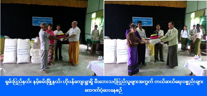 ရှမ်းပြည်နယ်၊ နမ့်ခမ်းမြို့နယ်၊ ဟိုပန်ကျေးရွာ၌ (၆-၅-၂၀၁၆) ရက်နေ့တွင် ဖြစ်ပွားခဲ့ရာ မီးဘေးကြောင့် နမ့်ခမ်းမြို့နယ်၊ ဟိုပန်ကျေးရွာရှိ အိမ်ခြေ (၆၂) လုံးနှင့် ဘုန်းကြီးကျောင်း (၁) ကျောင်းအတွက် အိမ်ဆောက်ပစ္စည်းဖိုးငွေ (၁) လုံးလျှင် (၅၀၀၀၀၀/-) ကျပ်နှုန်းဖြင့် စုစုပေါင်းထောက်ပံ့ငွေ (၃၁၅) သိန်းနှင့် (၅၄) အိမ်ထောင်စာအတွက် ကယ်ဆယ်ရေးပစ္စည်း (၉) မျိုးများအား (၁၉-၅-၂၀၁၆) ရက်နေ့တွင် ကယ်ဆယ်ရေးနှင့်ပြန်လည်နေရာချထားရေးဦးစီးဌာန၊ လာရှိုးခရိုင်ဦးစီးမှူးရုံးမှ တာဝန်ရှိသူများ၊ ပြည်နယ်လွှတ်တော်ကိုယ်စားလှယ် (၂) ဦး၊ မြို့နယ်အထောက်အကူပြုအဖွဲ့များ၊ ဌာနဆိုင်ရာများနှင့်အတူ သွားရောက်ထောက်ပံ့ပေးခဲ့ကြောင်း သိရှိရပါသည်။