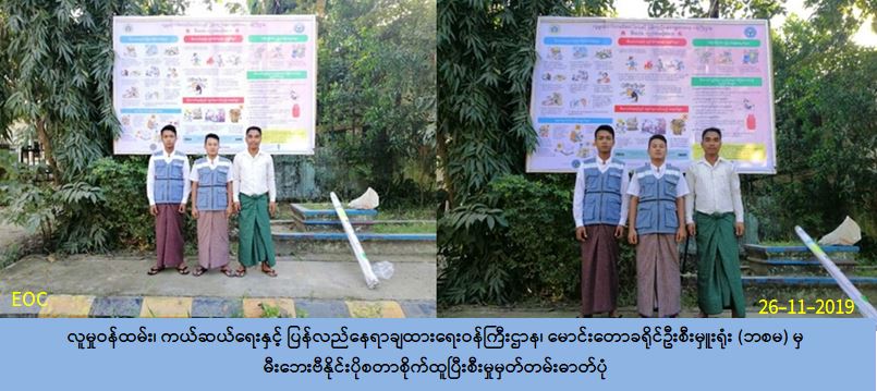 လူမှုဝန်ထမ်း၊ ကယ်ဆယ်ရေးနှင့် ပြန်လည်နေရာချထားရေးဝန်ကြီးဌာန၊ ဘေးအန္တရာယ်ဆိုင်ရာ စီမံခန့်ခွဲမှုဦးစီးဌာန၊ မောင်တောခရိုင်ဦးစီးမှူးရုံးမှ မောင်တောမြို့အဝင် မောင်တော-ဘူးသီးတောင်လမ်းနှင့် အလယ်သံကျော်လမ်းဆုံနေရာ၌ စိုက်ထူထားသော မီးဘေးအသိပညာပေး ဗီနိုင်းပိုစတာအား (၂၆-၁၁-၂၀၁၉) ရက်နေ့တွင် စိုက်ထူခဲ့ပါကြောင်း သတင်းရရှိပါသည်။
