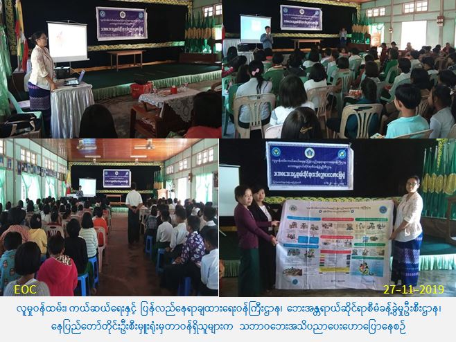 လူမှုဝန်ထမ်း၊ ကယ်ဆယ်ရေးနှင့် ပြန်လည်နေရာချထားရေးဝန်ကြီးဌာန၊ ဘေးအန္တရာယ်ဆိုင်ရာစီမံခန့်ခွဲမှုဦးစီးဌာန၊ နေပြည်တော်တိုင်းဦးစီးမှူးရုံးမှ တာဝန်ရှိသူများသည် (၂၇-၁၁-၂၀၁၉)ရက်နေ့၊ (၀၉:၀၀)ချိန်မှ (၁၁:၀၀) ချိန်အထိ လယ်ဝေးမြို့နယ်၊ အ.ထ.က (၁) စာသင်ကျောင်းတွင် ကျောင်းသား/ သူများအား သဘာဝဘေးအန္တရာယ်များနှင့်ပတ်သက်သော ဆောင်ရန်၊ ရှောင်ရန် အချက်များအား သိရှိလိုက်နာဆောင်ရွက်နိုင်ရေးအတွက် သဘာဝဘေးအသိပညာပေးဟောပြောပွဲ နှင့် ငလျင်ဘေးဖြစ်ပွားလာပါက ဖြစ်ပွားနေစဉ် မည်ကဲ့သို့ပြုမူနေထိုင်ရမည်ကို ကျောင်းသား/ သူ (၁၉၀) ဦးအား အသိပညာပေးဟောပြောခဲ့ပြီး တက်ရောက်လာသူများအား သဘာဝဘေးအသိ ပညာပေးလက်ကမ်းစာစောင်များ၊ ဗီနိုင်းပိုစတာ၊ နံရံကပ်ပိုစတာနှင့် မုန့်များဖြန့်ဝေပေးခဲ့ပါကြောင်း သတင်းရရှိပါသည်။