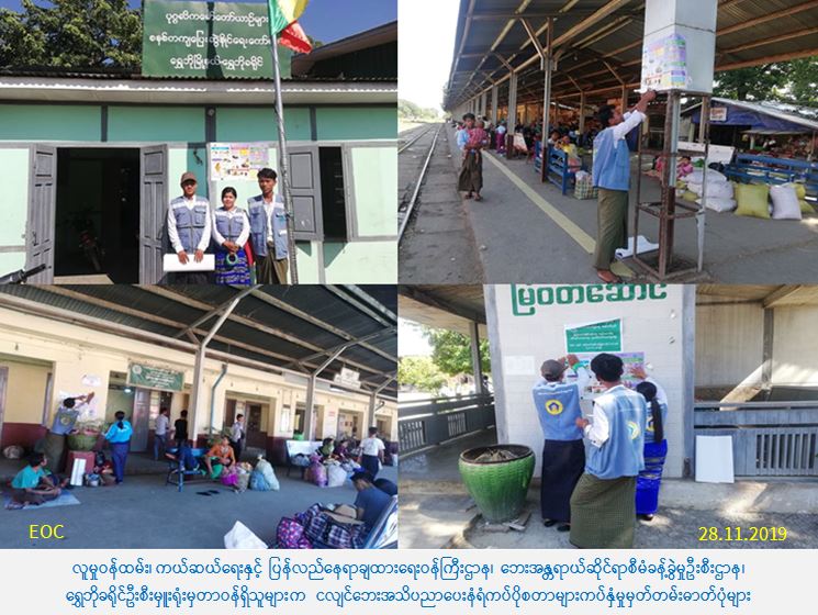 လူမှုဝန်ထမ်း၊ ကယ်ဆယ်ရေးနှင့် ပြန်လည်နေရာချထားရေးဝန်ကြီးဌာန၊ ဘေးအန္တရာယ်ဆိုင်ရာစီမံခန့်ခွဲမှုဦးစီးဌာန၊ ရွှေဘိုခရိုင်ဦးစီးမှူးရုံးမှတာဝန်ရှိသူများသည် (၂၈-၁၁-၂၀၁၉) ရက်နေ့တွင် လူစည်ကားရာနေရာများဖြစ်သည့် ကားဂိတ်၊ ဘူတာ၊ ဈေးနှင့် စာသင်ကျောင်းများ၌ ငလျင်ဘေးအသိပညာပေး ဆောင်ရန်/ ရှောင်ရန် နံရံကပ်ပိုစတာများကပ်နှံခြင်းအား ဆောင်ရွက်ခဲ့ ပါကြောင်းသတင်းရရှိပါသည်။