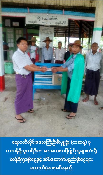 ဧရာဝတီတိုင်းဒေသကြီး၊ ပုသိမ်ခရိုင်၊ ရေကြည်မြို့နယ်၊ ယိုးဒယားတက်ကျေးရွာအုပ်စု၊ ပန်းတောရိုးကျေးရွာ၌ (၂၁-၅-၂၀၁၆) ရက်နေ့တွင် ဖြစ်ပွားခဲ့သော လေဘေးကြောင့် နေအိမ် (၁) လုံးပြိုကျခဲ့ပြီး နေအိမ် (၁) လုံးမှာ အမိုးလန်ခဲ့ပါသည်။ အဆိုပါပြိုကျနေအိမ် (၁) လုံးအတွက် ကယ်ဆယ်ရေးပစ္စည်း (၉) မျိုးနှင့် အိမ်ဆောက်ပစ္စည်းဖိုးငွေကျပ် (၅၀၀၀၀) အားလည်းကောင်း၊ အမိုးလန်နေအိမ် (၁) လုံးအတွက် ကယ်ဆယ်ရေးပစ္စည်း (၄) မျိုးနှင့် အိမ်ဆောက်ပစ္စည်းဖိုးငွေကျပ် (၂၀၀၀၀) အားလည်းကောင်း၊ လူဦးရေ ကျား (၅) ဦး၊ မ (၅) ဦး၊ စုစုပေါင်း (၁၀) ဦးအတွက် ဆန်ရိက္ခာ (၃) ရက်စာဖိုးငွေကျပ် (၉၀၀၀) အားလည်းကောင်း ဧရာဝတီတိုင်းဒေသကြီးဦးစီးမှူးရုံး (ကဆရ) မှ တာဝန်ရှိသူများသည် (၂၂-၅-၂၀၁၆) ရက်နေ့တွင် ဘေးသင့်ပြည်သူများထံသို့ သွားရောက်ထောက်ပံ့ပေးခဲ့ကြောင်း သိရှိရပါသည်။