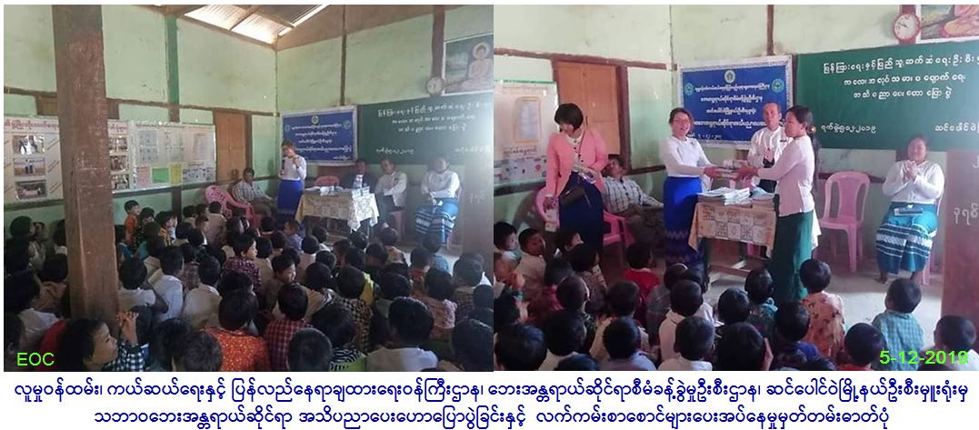 ပြန်လည်နေရာချထားရေးဝန်ကြီးဌာန၊ ဘေးအန္တရာယ်ဆိုင်ရာစီမံခန့်ခွဲမှုဦးစီးဌာန၊ ဆင်ပေါင်ဝဲ မြို့နယ်ဦးစီးမှူးရုံးမှ တာဝန်ရှိသူများသည် (၅.၁၂.၂၀၁၉) ရက်နေ့ နံနက်ပိုင်းတွင် ပြန်ကြားရေးနှင့်ပြည်သူ့ ဆက်ဆံရေးဦးစီးဌာန နှင့်အတူ ဆင်ပေါင်ဝဲမြို့နယ်၊ ကျားထူးဆန်းကျေးရွာအုပ်စု၊ သာယာကုန်းကျေးရွာရှိ အခြေခံပညာအလယ်တန်းကျောင်း(ခွဲ)၌ ဆရာ/ဆရာမနှင့် ကျောင်းသား/ကျောင်းသူစုစုပေါင်း (၂၁၆)ဦးတို့အား သဘာဝဘေးအန္တရာယ်များနှင့် ပတ်သက်၍ ဟောပြော ခဲ့ပြီး လက်ကမ်းစာစောင်များကိုလည်း ဖြန့်ဝေပေးခဲ့ပါကြောင်း သတင်းရရှိပါသည်။