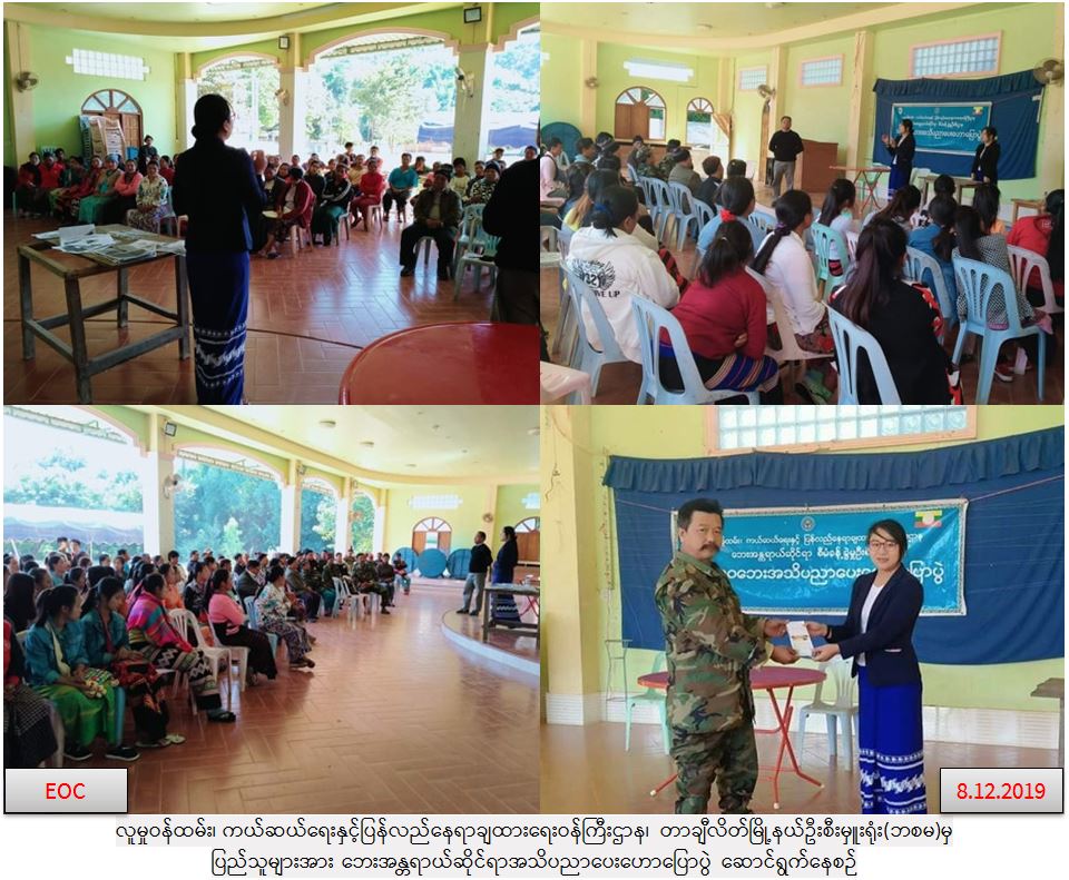 အနီးရှိကျေးရွာငယ်များမှ ရပ်မိရပ်ဖများအပါအဝင် စုစုပေါင်းအင်အား(၁၈၀)ဦးအား အသိပညာပေးဆွေးနွေးပွဲကျင်းပပြုလုပ်ခဲ့ရာ