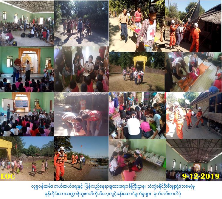 လူမှုဝန်ထမ်း၊ ကယ်ဆယ်ရေးနှင့် ပြန်လည်နေရာချထားရေးဝန်ကြီးဌာန၊ ဘေးအန္တရာယ်ဆိုင်ရာ စီမံခန့်ခွဲမှုဦးစီးဌာန၊ သံတွဲခရိုင်ဦးစီးမှူးရုံးမှ တာဝန်ရှိသူများသည် (၇-၁၂-၂၀၁၉) ရက်နေ့၊ (၀၈:၀၀) နာရီချိန်မှ(၁၂:၃၀) နာရီချိန်အထိ ရခိုင်ပြည်နယ်၊ သံတွဲခရိုင်၊ သံတွဲမြို့နယ်၊ ခမောင်းတုန်း ကျေးရွာ အုပ်စု၊ ခမောင်းတုန်းကျေးရွာ၌ “မုန်တိုင်းဘေးအန္တရာယ်ဝဲသဏ္ဌာန်တူ ဇာတ်တိုက်လေ့ကျင့်မှုအစီ အစဉ်”ကိုဆောင်ရွက်ခဲ့ပါသည်။ ယင်းဇာတ်တိုက်လေ့ကျင့်ခြင်းအစီအစဉ်တွင် မုန်တိုင်းဘေး အန္တရာယ်နှင့်ပတ်သက်၍ ( ဝါ၊ လိမ်၊ နီ၊ ညို၊ စိမ်း) အရောင်ကာလာအဆင့်များအလိုက် မိမိတို့ရရှိ လာသော သတင်းအချက်အလက်များမူတည်၍ မည်သို့လိုက်နာလုပ်ဆောင်ရမည်များကို ကြိုတင် ဆွေးနွေးသရုပ်ပြခဲ့ပြီးနောက် ပူးပေါင်းပါဝင်သူများမှ စနစ်တကျဆောင်ရွက်ခဲ့ရာ ပြည်နယ် အစိုးရ အဖွဲ့၊ စည်ပင်သာယာရေး/လမ်းပန်းဆက်သွယ်ရေးဝန်ကြီးဟောင်း (ငြိမ်း)၊ သံတွဲမြို့နယ်ဌာန ဆိုင်ရာများ / သဘာဝဘေးစီမံခန့်ခွဲမှုအဖွဲ့ဝင်များ (ထွေ/အုပ်)၊ မြန်မာနိုင်ငံရဲတပ်ဖွဲ့၊ မီးသတ်၊ လဝက၊ စည်ပင်၊ မိုးဇလ၊ လျှပ်စစ်၊ စိုက်ပျိုးရေး၊ ကျန်းမာရေး၊ ပညာရေး၊ လူမှုရေးအသင်းအဖွဲ့များ၊ ကြက်ခြေနီတပ်ဖွဲ့ဝင်များ၊ ကျေးရွာအုပ်ချုပ်ရေးမှူးနှင့် ကျေးရွာသူ/သား စုစုပေါင်း (၂၅၂) ဦး ပူးပေါင်းပါဝင်ခဲ့ပါကြောင်း သတင်းရရှိပါသည်။