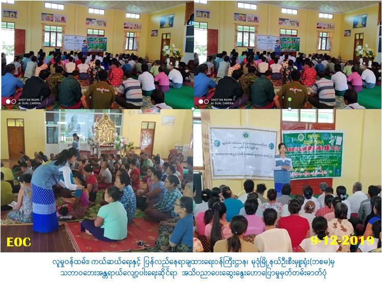 လူမှု၀န်ထမ်း၊ ကယ်ဆယ်ရေးနှင့်ပြန်လည်နေရာချထားရေး၀န်ကြီးဌာန၊ ဘေးအန္တရာယ်ဆိုင်ရာ စီမံခန့်ခွဲမှုဦးစီးဌာန၊ မုဒုံမြို့နယ်ဦးစီးမှူးရုံးမှ တာ၀န်ရှိသူများသည် (၉-၁၂-၂၀၁၉) ရက်နေ့တွင် (၁၀:၃၀) နာရီမှ(၁၁:၃၀) နာရီအထိ မွန်ပြည်နယ်၊ မော်လမြိုင်ခရိုင်၊ မုဒုံမြို့နယ်၊ ကျိုက်ရွဲကျေးရွာ၊ ရွာလယ်ဓမ္မာရုံ၌ သဘာဝဘေးအန္တရာယ်လျော့ပါးရေးဆိုင်ရာ အသိပညာပေးဆွေးနွေးဟောပြောပွဲ၊ (DAN Application) ဖြန့်ဝေခြင်းနှင့် အသုံးပြုခြင်းဆိုင်ရာဆွေးနွေးမှုများကို ကျင်းပပြုလုပ်ခဲ့ရာ ပြည်သူလူထုအင်အား(၁၂၀) ဦးခန့်တက်ရောက်ခဲ့ပါကြောင်းသတင်းရရှိပါသည်။