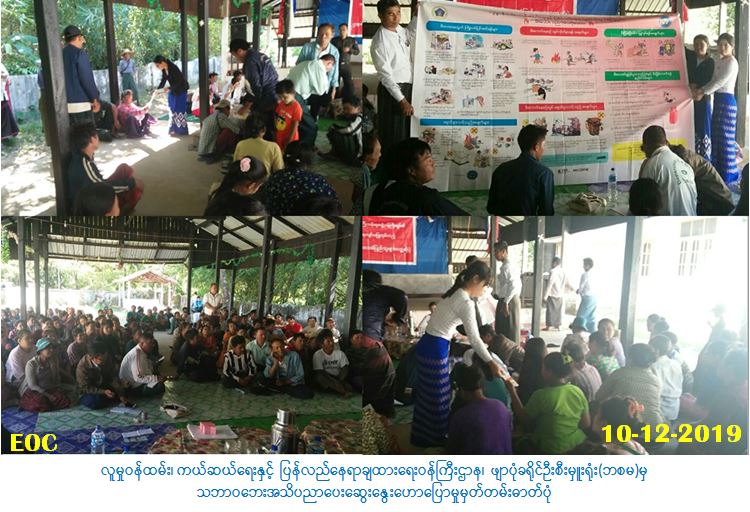 လူမှု၀န်ထမ်း၊ ကယ်ဆယ်ရေးနှင့်ပြန်လည်နေရာချထားရေး၀န်ကြီးဌာန၊ ဘေးအန္တရာယ်ဆိုင်ရာ စီမံခန့်ခွဲမှုဦးစီးဌာန၊ ဖျာပုံခရိုင်ဦးစီးမှူးရုံးမှ တာဝန်ရှိသူများသည်(၉-၁၂-၂၀၁၉) ရက်နေ့တွင် ဖျာပုံ မြို့နယ်၊ အမာမြို့၊ ဘဝသစ်ကျေးရွာအုပ်စု၊ အောက်ဆိပ်ကွင်းကျေးရွာ၌ သဘာဝဘေးလျော့ပါးရေး အသိပညာပေးဟောပြောပွဲ ကျင်းပခဲ့ရာ ကျေးရွာသူ/သား (၁၂၃) ဦးတက်ရောက်ခဲ့ပြီး လက်ကမ်းစာ စောင်များ ဖြန့်ဝေခြင်းနှင့် ဗီနိုင်းပိုစတာများ ပေးအပ်ခဲ့ပါကြောင်းသတင်းရရှိပါသည်။