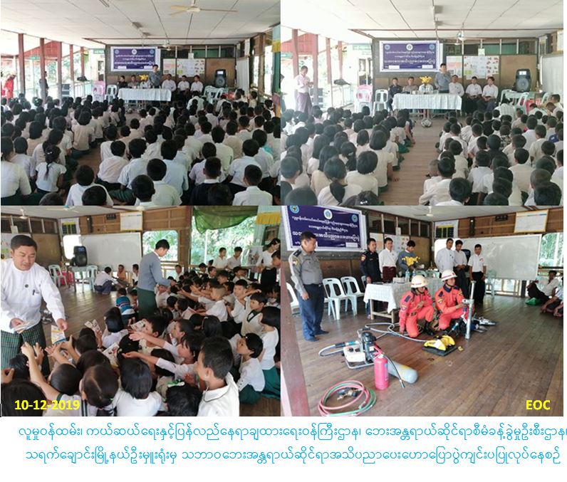 လူမှုဝန်ထမ်း၊ ကယ်ဆယ်ရေးနှင့် ပြန်လည်နေရာချထားရေးဝန်ကြီးဌာန၊ ဘေးအန္တရာယ်ဆိုင်ရာစီမံခန့်ခွဲမှုဦးစီးဌာန၊ သရက်ချောင်းမြို့နယ်ဦးစီးမှူးရုံးမှ တာဝန်ရှိသူများသည် (၁၀-၁၂-၂၀၁၉) ရက်နေ့တွင် မီးသတ်ဦးစီးဌာန၊ ပညာရေးဦးစီးဌာန၊ ပြန်ကြားရေးနှင့်ပြည်သူ့ဆက်ဆံရေးဦးစီးဌာန၊ ရဲတပ်ဖွဲ့မှ တာဝန်ရှိသူများတို့နှင့်အတူ သရက်ချောင်းမြို့နယ်၊ အမက(ပန်းတော)စာသင်ကျောင်း၌ ကျောင်းသား/ကျောင်းသူ(၂၀၀)ဦးအား သဘာဝဘေးအန္တရာယ် နှင့်ပတ်သက်၍ အသိပညာပေးဟောပြောပွဲပြုလုပ်ခြင်း၊ သရုပ်ပြခြင်းများပြုလုပ်ခြင်းနှင့် တက်ရောက်လာသူများကို လက်ကမ်းစာစောင်များ ဖြန့်ဝေပေးခဲ့ပါကြောင်း သတင်းရရှိပါသည်။