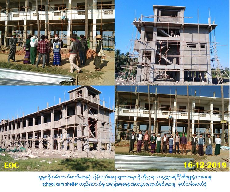 လူမှုဝန်ထမ်း၊ ကယ်ဆယ်ရေးနှင့် ပြန်လည်နေရာချထားရေးဝန်ကြီးဌာန၊ ဘေးအန္တရာယ်ဆိုင်ရာ စီမံခန့်ခွဲမှုဦးစီးဌာန၊ လပွတ္တာခရိုင်ဦးစီးမှူးရုံးမှ တာဝန်ရှိသူများသည် (၁၆-၁၂-၂၀၁၉) ရက်နေ့တွင် မြို့နယ်ဆောက်လုပ်ရေးကြီးကြပ်မှုကော်မတီအဖွဲ့နှင့်အတူ အမျိုးသားသဘာဝဘေးအန္တရာယ်ဆိုင်ရာ စီမံခန့်ခွဲမှုကော်မတီ၏ ရန်ပုံငွေဖြစ်တည်ဆောက်လျက်ရှိသော လပွတ္တာမြို့နယ်၊ ဒေါင့်ကြီးကုန်းကျေး ရွာ၊ ဒရယ်ဖြူကြီးကျေးရွာနှင့် အုံတုံကုန်းကျေးရွာတို့မှ school cum shelter တည်ဆောက်မှု (၇၅)% နှင့်ဂွေးချောင်းကျေးရွာမှ (50)% တည်ဆောက်ပြီးစီးမှုအခြေအနေများအား သွားရောက်စစ်ဆေးခဲ့ ကြောင်းသတင်းရရှိပါသည်။