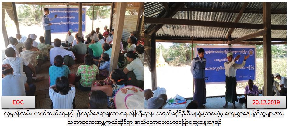 လူမှုဝန်ထမ်း၊ ကယ်ဆယ်ရေးနှင့်ပြန်လည်နေရာချထားရေးဝန်ကြီးဌာန၊ ဘေးအန္တရာယ်ဆိုင်ရာစီမံခန့်ခွဲမှုဦးစီးဌာန၊ သရက်ခရိုင်ဦးစီးမှူးရုံးမှ တာဝန်ရှိသူများသည် (၂၀.၁၂..၂၀၁၉)ရက်နေ့၌ သရက်မြို့နယ်၊ မဒင်းကျေးရွာအုပ်စု၊ မဒင်းကျေးရွာ၌ သဘာဝဘေးလျော့ပါးရေး အသိပညာပေးဟောပြောပွဲကျင်းပပြုလုပ်ခဲ့ရာ အဆိုပါဟောပြောပွဲသို့ လူဦးရေ (၁၀၀)ဦးခန့်တက်ရောက်ခဲ့ပြီး ဆပ်ပြာမှုန့်ထုပ်များနှင့် လက်ကမ်းစာစောင်များ ဖြန့်ဝေပေးခဲ့ကြောင်းသတင်းရရှိပါသည်။