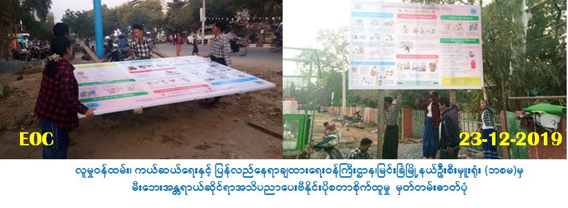 လူမှုဝန်ထမ်း၊ ကယ်ဆယ်ရေးနှင့် ပြန်လည်နေရာချထားရေးဝန်ကြီးဌာန၊ ဘေးအန္တရာယ်ဆိုင်ရာ စီမံခန့်ခွဲမှုဦးစီးဌာန၊ မြင်းခြံမြို့နယ်ဦးစီးမှူးရုံးမှ တာဝန်ရှိသူများသည် (၂၃ -၁၂-၂၀၁၉) ရက်နေ့တွင် မြင်းခြံမြို့၊ ဗိုလ်ချုပ်ပန်းခြံရှေ့၌ မီးဘေးအန္တရာယ်ဆိုင်ရာအသိပညာပေးဗီနိုင်းဆိုင်းဘုတ်အား စိုက်ထူခဲ့ကြောင်းသတင်းရရှိပါသည်။