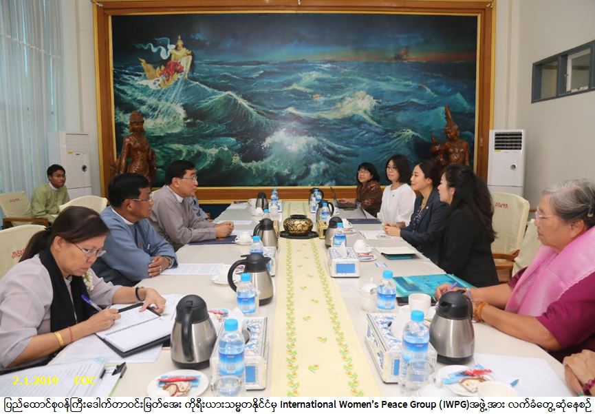 တွေ့ဆုံရာတွင် (IWPG) အဖွဲ့အစည်းအနေဖြင့် ငြိမ်းချမ်းရေးတည်ဆောက်ရေးလုပ်ငန်းများနှင့် အမျိုးသမီးများဖွံးဖြိုးတိုးတက်ရေးဆိုင်ရာကိစ္စရပ်များကို ၂၀၁၃ခုနှစ်မှစတင်၍ မြန်မာနိုင်ငံအပါအဝင် နိုင်ငံပေါင်း (၁၀၀)ကျော်တွင် ရုံးခွဲများဖွင့်လှစ်၍ ဆောင်ရွက်နေမှုများ၊ (IWPG)အနေဖြင့် မြန်မာနိုင်ငံလုံးဆိုင်ရာ အမျိုးသမီးကော်မတီနှင့်ပူးပေါင်းဆောင်ရွက်နိုင်ရေး အလားအလာများ၊ အမျိုးသမီးများ ဖွံ့ဖြိုးတိုးတက်ရေး ဆိုင်ရာ မဟာဗျူဟာစီမံကိန်း (NSPAW, 2013-2022)အကောင်အထည်ဖော် ဆောင်ရွက်နေမှုများနှင့် အမျိုးသမီး၊ ငြိမ်းချမ်းရေးနှင့် လုံခြုံရေးဆိုင်ရာအစီအစဉ်အောက်မှ ဆောင်ရွက်နေမှုများ၊ အမျိုးသမီးများအနေဖြင့် ငြိမ်းချမ်းရေးဆောင်ရွက်မှုများတွင် ပိုမိုပါဝင်နိုင်ရန် အတွက် Peace Education အား တိုးမြှင့်ဆောင်ရွက်နိုင်မည့် အခြေအနေများ၊ ၂၀၂၀ခုနှစ် မတ်လ အတွင်း အမေရိကန်နိုင်ငံ၊ နယူးယောက်မြို့တွင် ကျင်းပပြုလုပ်မည့် Commission on Status of Women နိုင်ငံတကာညီလာခံတွင် မြန်မာနိုင်ငံနှင့်ပူးပေါင်း၍ Side Event တစ်ခု ပူးတွဲပြုလုပ်နိုင်ရန် ဖြစ်နိုင်မည့်အခြေအနေများနှင့်စပ်လျဉ်း၍ ရင်းနှီးပွင့်လင်းစွာ တွေ့ဆုံဆွေးနွေးခဲ့ကြောင်း သတင်းရရှိ ပါသည်။