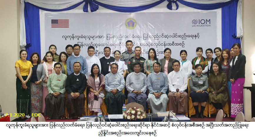 အစည်းအဝေးတွင် လူကုန်ကူးခံရသူများအား ပြန်လည်လက်ခံရေး၊ ပြန်လည်ဝင်ဆံ့ပေါင်းစည်းရေးနှင့် ပြန်လည်ထူထောင်ရေးလုပ်ငန်းအဖွဲ့ ဥက္ကဌ၊ လူမှုဝန်ထမ်း၊ ကယ်ဆယ်ရေးနှင့် ပြန်လည်နေရာချထားရေး ဝန်ကြီးဌာန၊ ဒုတိယဝန်ကြီးဦးစိုးအောင်က အဖွင့်အမှာစကား ပြောကြားရာတွင် လူမှုဝန်ထမ်း၊ ကယ်ဆယ်ရေးနှင့် ပြန်လည်နေရာချထားရေးဝန်ကြီးဌာနသည် လူကုန်ကူးခံရသူများအား ပြန်လည်လက်ခံရေး၊ ပြန်လည်ဝင်ဆံ့ ပေါင်းစည်းရေးနှင့် ပြန်လည်ထူထောင်ရေးလုပ်ငန်းအဖွဲ့၏ ဥက္ကဌတာဝန်ကို တာဝန်ယူ ဆောင်ရွက်လျက် ရှိပါကြောင်း၊ မိမိတို့ဝန်ကြီးဌာနအနေဖြင့် ပြည်ပနိုင်ငံများသို့ လူကုန်ကူးခံရသူများအား ပြန်လည်လက်ခံရေး၊ ပြန်လည်ဝင်ဆံ့ပေါင်းစည်းရေးနှင့် ပြန်လည်ထူထောင်ရေးလုပ်ငန်းများကို ၁၉၉၂ ခုနှစ် ကတည်းက စတင်ဆောင်ရွက်လျက်ရှိပါကြောင်း၊ နိုင်ငံတော်အနေနဲ့ လူကုန်ကူးခြင်းအား ဆိုးရွားတဲ့ လူ့အခွင့်အရေး ချိုးဖောက်မှုတစ်ခုအဖြစ်မှတ်ယူကာ အမျိုးသားရေးတာဝန်အဖြစ် သတ်မှတ်ဆောင်ရွက်လျက်ရှိပါကြောင်း၊ မိမိတို့ဝန်ကြီးဌာနအနေဖြင့် လူကုန်ကူးခံရသူများအား ပြန်လည်လက်ခံရေး၊ မိသားစုများနှင့် ပြန်လည်ဝင်ဆံ့ ပေါင်းစည်းရေးလုပ်ငန်းများအား အောင်မြင်အောင် ဆောင်ရွက်လျက်ရှိပြီး၊ ပြန်လည်ထူထောင်ရေးလုပ်ငန်းများ ဆောင်ရွက်ရာမှာ သက်ဆိုင်ရာဝန်ကြီးဌာနများနှင့် အဖွဲ့အစည်းများ၏ ပူးပေါင်းဆောင်ရွက်မှုသည် အရေးကြီး ပါကြောင်း၊ မိမိတို့ပံ့ပိုးကူညီပေးသော ပြန်လည်ထူထောင်ရေးဝန်ဆောင်မှုများ ရရှိခံစားရသည့် လူကုန်ကူးခံရ သူများအနေနဲ့ ၎င်းတို့အတွက် အကျိုးဖြစ်ထွန်းမှုနှင့် ထိရောက်မှု ရှိ/မရှိကို သိရှိနိုင်ဖို့ဆောင်ရွက်ရန် လိုအပ်ပါကြောင်း၊ သို့မှသာ ၎င်းတို့လိုအပ်ချက်နှင့် ပံ့ပိုးကူညီမှုများ ကိုက်ညီပြီး အောင်မြင်သော ပြန်လည်ထူထောင်ရေးလုပ်ငန်းများ ဖြစ်လာမည်ဖြစ်ကြောင်း၊ စံလုပ်ငန်းအစီအစဉ်များ ရေးဆွဲရာတွင်လည်း နိုင်ငံတော်တွင် ပြဌာန်းထားရှိသော တည်ဆဲဥပဒေများ၊ သက်ဆိုင်ရာဝန်ကြီးဌာနမှ ထုတ်ပြန်ထားသော လုပ်ထုံးလုပ်နည်း၊ ဥပဒေများနဲ့ ချိတ်ဆက်ဆောင်ရွက်နိုင်ရန်လည်း အရေးကြီးပါကြောင်း၊ ၂၀၁၉ ခုနှစ်တွင် ထုတ်ပြန်ခဲ့သော ကလေးသူငယ်အခွင့်အရေးများဆိုင်ရာ ဥပဒေနှင့်လည်း ချိတ်ဆက်ဆောင်ရွက်ဖို့လိုကြောင်း၊ တက်ရောက်လာကြသော ဌာနများမှလည်း လိုအပ်သောအချက်များ ထည့်သွင်းဆွေးနွေးပေးစေလိုကြောင်း၊ ယခု စံလုပ်ငန်းအစီအစဉ် နည်းပညာပိုင်းဆိုင်ရာ အကူအညီအတွက် IOM (Myanmar) မှ ကူညီပံ့ပိုး ဆောင်ရွက်လျက်ရှိကြောင်း၊ သက်ဆိုင်ရာဌာနများအလိုက် အကြံပြုချက်များလည်း ပေးပို့ပြီးဖြစ်သဖြင့် အတည်ပြု ရန်အတွက် ဝိုင်းဝန်းဆွေးနွေးပေးရမည် ဖြစ်ပါကြောင်း၊ ဝန်ကြီးဌာနမျာ