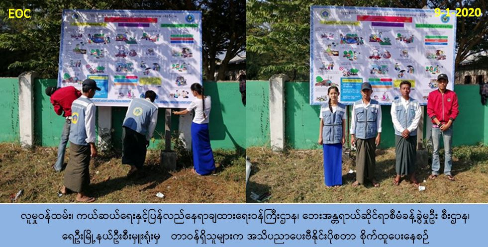 လူမှုဝန်ထမ်း၊ ကယ်ဆယ်ရေးနှင့် ပြန်လည်နေရာချထားရေးဝန်ကြီးဌာန၊ ဘေးအန္တရာယ် ဆိုင်ရာစီမံခန့်ခွဲမှုဦးစီးဌာန၊ ဘေးအန္တရာယ်ဆိုင်ရာစီမံခန့်ခွဲမှုဦးစီးဌာန၊ ရေဦးမြို့နယ်ဦးစီးမှူး ရုံးမှတာဝန်ရှိသူများသည် (၉-၁-၂၀၂၀) ရက်နေ့တွင် (အ.ထ.က)(၁) ကျောင်းရှေ့တွင် သဘာဝဘေးအန္တရာယ်များနှင့် ပတ်သက်ပြီး ဆောင်ရန်/ရှောင်ရန် အချက်အလက် များကို ပြည်သူများအား သိပညာဗဟုသုတများရရှိစေရန်အတွက် မိုးခေါင်ရေရှား အသိပညာပေး ဗီနိုင်းပိုစတာ စိုက်ထူခဲ့ပါကြောင်း သတင်းရရှိပါသည်။
