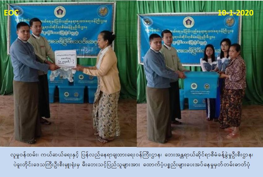 လူမှုဝန်ထမ်း၊ ကယ်ဆယ်ရေးနှင့် ပြန်လည်နေရာချထားရေးဝန်ကြီးဌာန၊ ဘေးအန္တရာယ် ဆိုင်ရာစီမံခန့်ခွဲမှုဦးစီးဌာန၊ ပဲခူးတိုင်းဒေသကြီးဦးစီးမှူးရုံးမှ တာဝန်ရှိသူများသည် (၁၀ – ၁ -၂၀၂၀ )ရက်နေ့တွင် ဝေါမြို့နယ်၊အေးချမ်းသာယာရပ်ကွက်၊ အောင်မင်္ဂလာ (၂) လမ်းတွင် ဖြစ်ပွားခဲ့သောမီးဘေးမှ ပျက်စီးနေအိမ် (၅) လုံးအတွက် အိမ်ဆောက်ပစ္စည်းဖိုးထောက်ပံ့ ငွေ (၉၀၀,၀၀၀)ကျပ်၊ လူဦးရေ (၁၄) ဦးအတွက် ဆန်ရိက္ခာ (၇) ရက်စာဖိုးထောက်ပံ့ငွေ (၂၉,၄၀၀) ကျပ်၊ စုစုပေါင်းထောက်ပံ့ငွေ (၉၂၉,၄၀၀) ကျပ်နှင့် ထောက်ပံ့ရေးပစ္စည်း (၁၉) မျိုး ၊(၅) အိမ်ထောင်စာတန်ဖိုးငွေ (၁၉၁,၇၆၅) ကျပ်တို့အား ဘေးသင့်ပြည်သူများလက်ဝယ် အရောက်သွား ရောက်ထောက်ပံ့ခဲ့ကြောင်းသတင်းရရှိပါသည်။