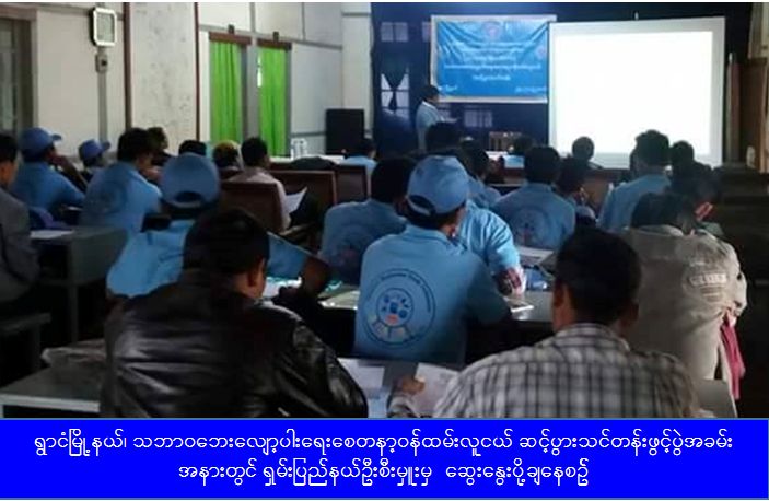 ကယ်ဆယ်ရေးနှင့် ပြန်လည်နေရာချထားရေးဦးစီးဌာန၊ ရှမ်းပြည်နယ်ဦးစီးမှူးရုံးမှ တာဝန်ရှိသူများသည် ရက် (၁၀၀) စီမံ ချက်လုပ်ငန်းစဉ်အရ သဘာဝဘေးလျော့ပါးရေး စေတနာ့ ဝန်ထမ်းလူငယ်(ဆင့်ပွား) သင်တန်းအမှတ်စဉ်(၁/၂၀၁၆) ဖွင့်ပွဲ အခမ်းအနား အား ရှမ်းပြည်နယ် (တောင်ပိုင်း)၊ ရွာငံမြို့နယ်ထွေအုပ်ရုံး အစည်းအဝေးခန်းမ၌ (၂၅-၅-၂၀၁၆) ရက်နေ့တွင် ကျင်းပပြုလုပ်ခဲ့ရာ မြို့နယ်အုပ်ချုပ်ရေးမှူး၊ ဌာနဆိုင်ရာများနှင့် သင်တန်းသားများ၊ စုစုပေါင်း လူဦးရေ (၅၆) ဦး တက်ရောက် ခဲ့ပါကြောင်း သိရှိရပါသည်။
