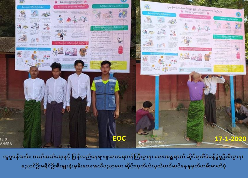 လူမှုဝန်ထမ်း၊ ကယ်ဆယ်ရေးနှင့် ပြန်လည်နေရာချထားရေးဝန်ကြီးဌာန၊ ဘေးအန္တရာယ် ဆိုင်ရာစီမံခန့်ခွဲမှုဦးစီးဌာန၊ ညောင်ဦးခရိုင်ဦးစီးမှူးရုံးမှ တာဝန်ရှိသူများသည် ( ၁၆ – ၁ – ၂၀၂၀) ရက်နေ့တွင် ညောင်ဦးမြို့၊ မြို့မရဲစခန်းရှေ့ရှိ ရေဘေးအသိပညာပေးဗီနိုင်းဆိုင်း ဘုတ်အား မီးဘေးအသိပညာပေးဗီနိုင်းဖြင့် လဲလှယ်တပ်ဆင်ခဲ့ကြောင်း သတင်းရရှိပါ သည်။