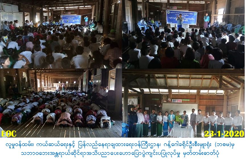 လူမှုဝန်ထမ်း၊ ကယ်ဆယ်ရေးနှင့်ပြန်လည်နေရာချထားရေးဝန်ကြီးဌာန၊ ဘေးအန္တရာယ်ဆိုင်ရာ စီမံခန့်ခွဲမှုဦးစီးဌာန၊ ဂန့်ဂေါခရိုင်ဦးစီးမှူးရုံးမှ တာဝန်ရှိသူများသည်(၂၃-၁-၂၀၂၀)ရက်နေ့၊ (၁၃:၃၀) နာရီမှ(၁၅:၃၀)နာရီအထိ ပြန်ကြားရေးနှင့်ပြည်သူ့ဆက်ဆံရေးဦးစီးဌာန၊ မြို့နယ်မီးသတ်ဦးစီးဌာန၊ စားသုံးသူရေးရာဦးစီးဌာန၊ လူမှုဝန်ထမ်းဦးစီးဌာနတို့ဖြင့်ပူးပေါင်း၍ ဂန့်ဂေါခရိုင်၊ ဂန့်ဂေါမြို့နယ်၊ လယ်မကျေးရွာ၊ အလယ်တန်းကျောင်း၌ ဆရာ/ဆရာမ(၁၄)ဦး၊ ကျောင်းသား/သူ(၂၄၆)ဦး၊ စုစု ပေါင်း(၂၆၀)ဦးတို့အား ငလျင်ဘေးနှင့်အခြားသဘာဝဘေးအန္တရာယ်ဆိုင်ရာ အသိပညာပေးဟော ပြောပွဲကျင်းပပြုလုပ်ခဲ့ပါကြောင်းနှင့် အသိပညာပေးလက်ကမ်းစာစောင်များဖြန့်ဝေပေးခဲ့ပါကြောင်း သတင်းရရှိပါသည်။