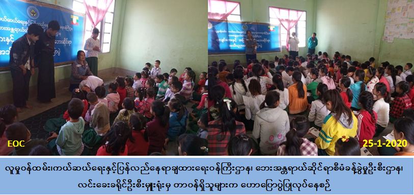 လူမှုဝန်ထမ်း၊ ကယ်ဆယ်ရေးနှင့်ပြန်လည်နေရာချထားရေးဝန်ကြီးဌာန၊ ဘေးအန္တရာယ် ဆိုင်ရာစီမံခန့်ခွဲမှုဦးစီးဌာန၊ လင်းခေးခရိုင်ဦးစီးမှူးရုံးမှ တာဝန်ရှိသူများသည် (၂၄-၁-၂၀၂၀) နေ့၊ နံနက် (၀၈:၀၀) နာရီ မှ (၁၀:၀၀) နာရီထိ အခြေခံပညာအလယ်တန်းကျောင်း (နမ့်တင်) တွင် ဆရာ/ဆရာမ၊ ကျောင်းသား /ကျောင်းသူ တက်ရောက်သူ စုစုပေါင်း (၁၅၀) အား ငလျင်ဘေးနှင့် အခြားသဘာဝဘေးများအကြောင်း အသိပညာပေး ဟောပြောဆွေးနွေးပွဲကို ကျင်းပပြုလုပ်ခဲ့ပါပြီး အဆိုပါဟောပြောပွဲတွင် ဦးစီးဌာန၏ လုပ်ငန်း တာဝန်များ၊ ရည်ရွယ်ချက်များ၊ ဘေး (၈) မျိုး ဆောင်ရန်/ရှောင်ရန်များ ၊ ကျောင်းသား /ကျောင်းသူများ အား ရာသီဥတုပြောင်းလဲမှုကြောင့် အပူရှိန်မြှင့်တက်လာနိုင်မှုများ၊ နောက်ဆက်တွဲဘေး အန္တရာယ်များ၊ ဖြစ်ပေါ်လာနိုင်မှု အခြေအနေများကို အသေးစိတ်ဆွေးနွေးပြီး သိလိုသည့် မေးမြန်းချက်များကို ပြန်လည်ဖြေကြားပေးခြင်း၊ ငလျင်ဘေးအန္တရာယ်ဖြစ်ပေါ်လာပါက နေထိုင်ရမည့် အနေအထားများကို လက်တွေ့သရုပ်ပြသခြင်း၊ လိုက်ပါဆောင်ရွက်စေခြင်း၊ ဘေး (၈) မျိုးလက်ကမ်းစာစောင်များ ဖြန့်ဝေပေးခြင်း၊ သဘာဝဘေးမှတ်တမ်း (Video) ပြသခြင်းများ ဆောင်ရွက်ခဲ့ကြောင်း သတင်းရရှိပါသည်။