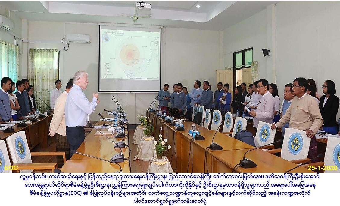 လူမှုဝန်ထမ်း၊ ကယ်ဆယ်ရေးနှင့် ပြန်လည်နေရာချထားရေးဝန်ကြီးဌာန၊ ဘေးအန္တရာယ်ဆိုင်ရာ စီမံခန့်ခွဲမှုဦးစီးဌာနသည် US Forest Survey (USFS), USAID တို့နှင့်ပူးပေါင်း၍ အရေးပေါ်အခြေအနေစီမံခန့်ခွဲမှုဗဟိုဌာန (EOC) ၏ စံပြုလုပ်ငန်းစဉ် (Standard Operation Procedures-SOP) ကို ရေးဆွဲ ဆောင်ရွက်လျက်ရှိပါသည်။ အဆိုပါ စံပြုလုပ်ငန်းစဉ်များအတိုင်း လက်တွေ့လုပ်ဆောင်နိုင်မှုအခြေအနေကို ဆန်းစစ်နိုင်ရန်အတွက် “ဌာနတွင်း လက်တွေ့ သဏ္ဍာန်တူလေ့ကျင့်ခန်း”ကို ၂၀၂၀ ပြည်နှစ်၊ ဇန်နဝါရီလ (၂၂) ရက်နေ့မှ (၂၄) ရက်နေ့အထိ အရေးပေါ်အခြေအနေစီမံခန့်ခွဲမှုဗဟိုဌာန (EOC) တွင် (၃) ရက်ကြာ ကျင်းပပြုလုပ်ခဲ့ရာ လူမှုဝန်ထမ်း၊ ကယ်ဆယ်ရေးနှင့် ပြန်လည်နေရာချထားရေးဝန်ကြီးဌာန၊ ပြည်ထောင်စုဝန်ကြီး ဒေါက်တာဝင်းမြတ်အေး၊ ဒုတိယ ဝန်ကြီး ဦးစိုးအောင်၊ ဘေးအန္တရာယ်ဆိုင်ရာစီမံခန့်ခွဲမှုဦးစီးဌာန၊ ညွှန်ကြားရေးမှူးချုပ်ဒေါက်တာကိုကိုနိုင်နှင့် ဦးစီးဌာနမှတာဝန်ရှိသူများသည် ယမန်နေ့ မွန်းလွဲပိုင်းက သဏ္ဍာန်တူလေ့ကျင့်ခန်းနှင့်သက်ဆိုင်သည့် အခန်းကဏ္ဍအလိုက် ပါဝင်ဆောင်ရွက်ခဲ့ကြပါသည်။
