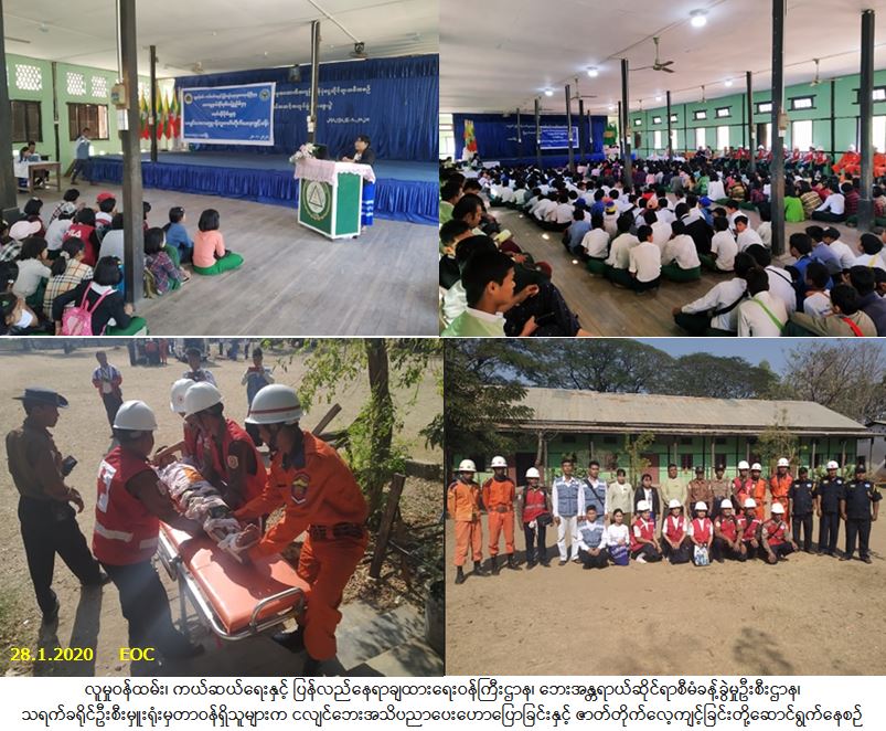 လူမှုဝန်ထမ်း၊ ကယ်ဆယ်ရေးနှင့် ပြန်လည်နေရာချထားရေးဝန်ကြီးဌာန၊ ဘေးအန္တရာယ်ဆိုင်ရာစီမံခန့်ခွဲမှုဦးစီး ဌာန၊ သရက်ခရိုင်ဦးစီးမှူးရုံးမှတာဝန်ရှိသူများသည် အထွေထွေအုပ်ချုပ်ရေးဦးစီးဌာန၊ မီးသတ်ဦးစီးဌာန၊ မြန်မာနိုင်ငံကြက်ခြေနီအသင်းတို့နှင့်ပူးပေါင်း၍ (၂၈-၁-၂၀၂၀)ရက်နေ့၊ (၁၃:၀၀)နာရီအချိန်မှ (၁၅:၃၀)နာရီ အချိန်အထိ သရက်မြို့နယ်၊ အမှတ်(၁)အခြေခံပညာအထက်တန်းကျောင်း၌ ကျောင်းသား/သူ (၃၅ဝ)ဦးတို့ကို ငလျင်ဘေးအသိပညာပေးဟောပြောခြင်းနှင့် ဇာတ်တိုက်လေ့ကျင့်ခြင်းများဆောင်ရွက်ခဲ့ပါကြောင်း သတင်းရရှိ ပါသည်။