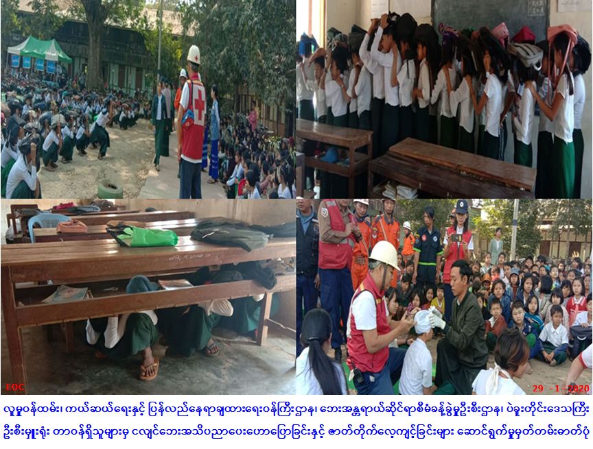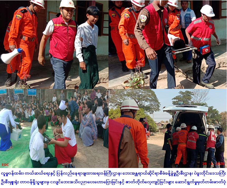 လူမှုဝန်ထမ်း၊ ကယ်ဆယ်ရေးနှင့် ပြန်လည်နေရာချထားရေးဝန်ကြီးဌာန၊ ဘေးအန္တရာယ်ဆိုင်ရာစီမံ ခန့်ခွဲမှုဦးစီးဌာန၊ ပဲခူးတိုင်းဒေသကြီးဦးစီးမှူးရုံးမှတာဝန်ရှိသူများသည် (၂၉-၁-၂၀၂၀)ရက်နေ့၊ (၁၀:၀၀) နာရီအချိန်မှ (၁၂:၀၀)နာရီ အချိန်အထိ ဇီးကုန်းမြို့နယ်၊ အခြေခံပညာအထက်တန်းကျောင်း (မြို့မ) ၌ မြို့နယ်အဆင့်ဌာနဆိုင်ရာများမှ တာဝန်ရှိသူများ (၅၀) ဦးနှင့်ပူးပေါင်း၍ ကျောင်းသား/သူ (၁၂၀၀) ဦးတို့အား ငလျင်ဘေးအသိပညာပေးဟောပြောခြင်းနှင့် ဇာတ်တိုက်လေ့ကျင့်ခြင်းများဆောင်ရွက်ခဲ့ ပါကြောင်း သတင်းရရှိ ပါသည်။