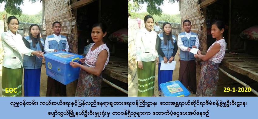 လူမှုဝန်ထမ်း၊ ကယ်ဆယ်ရေးနှင့်ပြန်လည်နေရာချထားရေးဝန်ကြီးဌာန၊ ဘေးအန္တရာယ် ဆိုင်ရာစီမံခန့်ခွဲမှုဦးစီးဌာန၊ ပျော်ဘွယ်မြို့နယ်ဦးစီးမှူးရုံးမှ တာဝန်ရှိသူများသည် (၂၈-၁-၂၀၂၀) ရက်နေ့၊ (၁၀:၅၅) နာရီအချိန်၌ ပျော်ဘွယ်မြို့နယ်၊ ရွှေပြည်ရန်နိုင်ရပ်ကွက်တွင် ဖြစ်ပွားခဲ့သောမီးဘေး(၁) အိမ်အတွက် အိမ်ဆောက်ပစ္စည်းထောက်ပံ့ဖိုးငွေ (၆,၀၀၀/-) ကျပ်၊ လူဦးရေ(၄) ဦးအတွက် ဆန်ရိက္ခာဖိုးထောက်ပံ့ငွေ (၈,၄၀၀/-) ကျပ် ကယ်ဆယ်ရေးပစ္စည်း (၁၀)မျိုးပါ (၁)အိမ်ထောင်စုစာ၊ စုစုပေါင်းကယ်ဆယ်ရေးပစ္စည်း နှင့် ထောက်ပံ့ငွေ (၃၂,၉၁၀/-) ကျပ် တိတိအား ( ၂၉ – ၁ – ၂၀၂၀) ရက်နေ့ (၁၄:၀၀) နာရီ အချိန်တွင် သွားရောက်ထောက်ပံ့ခဲ့ပါကြောင်း သတင်းရရှိပါသည်။