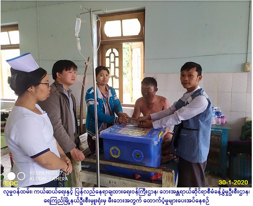 လူမှုဝန်ထမ်း ကယ်ဆယ်ရေးနှင့်ပြန်လည်နေရာချထားရေးဝန်ကြီးဌာန၊ ဘေးအန္တရာယ်ဆိုင်ရာစီမံခန့်ခွဲမှုဦးစီးဌာန၊ ရေကြည် မြို့နယ်ဦးစီးမှူးရုံးမှ တာဝန်ရှိသူများသည် ရေကြည်မြို့နယ်၊ ပန်းပုကွင်းကျေးရွာအုပ်စု၊ ပန်းပုကွင်းကျေးရွာတွင် (၂၈.၁.၂၀၂၀) ရက်နေ့တွင် ဖြစ်ပွားသောမီးဘေးကြောင့် မီးလောင်ပျက်စီးနေအိမ်(၁)လုံးအတွက် အိမ်ဆောက်ပစ္စည်းဖိုးရန်ပုံငွေ (၁၀၀၀၀ဝ/-) ကျပ်၊ လူဦးရေ(၁)ဦးအတွက် ဆန်ရိက္ခာ (၇) ရက်စာရန်ပုံငွေ (၂၁၀ဝ/-)ကျပ်၊ ဒဏ်ရာရလူနာတစ်ဦးအတွက် ထောက်ပံ့ငွေ (၅၀၀၀ဝ/-)ကျပ်၊ စုစုပေါင်းရန်ပုံငွေ (၁၅၂၁၀ဝ/-)နှင့် ကယ်ဆယ်ရေးပစ္စည်း (၁၇)မျိုးပါ (၁)အိမ်ထောင်စာ (၃၂၃၅၃/-)ကျပ်တို့ကို (၃၀.၁.၂၀၂၀)ရက်နေ့ (၁၇:၁၅)နာရီအချိန်တွင် ဘေးသင့်ပြည်သူများလက်ဝယ်အရောက် ထောက်ပံ့ပေးခဲ့ပါကြောင်း သတင်းရရှိပါ သည်။