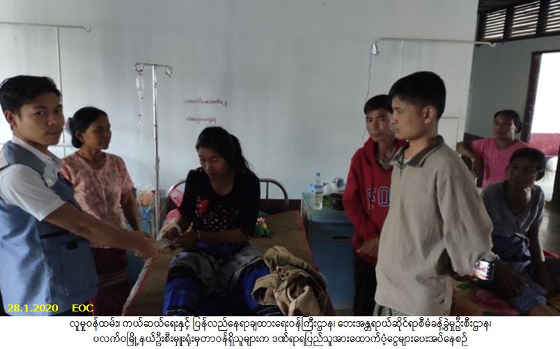 လူမှုဝန်ထမ်း၊ ကယ်ဆယ်ရေးနှင့် ပြန်လည်နေရာချထားရေးဝန်ကြီးဌာန၊ ဘေးအန္တရာယ်ဆိုင်ရာစီမံခန့်ခွဲမှုဦးစီး ဌာန၊ ပလက်ဝမြို့နယ်ဦးစီးမှူးရုံးမှတာဝန်ရှိသူများသည် ချင်းပြည်နယ်၊ မင်းတပ်ခရိုင်၊ ပလက်ဝမြို့နယ်၊ ငရှားကျေးရွာအုပ်စု၌ (၂၈-၁-၂၀၂၀)ရက်နေ့၊ (၁၂:၀၀)နာရီအချိန်တွင် ဆွဲမိုင်းပေါက်ကွဲမှုကြောင့် ဒဏ်ရာသူ (၁) ဦးအတွက် ဒဏ်ရာရထောက်ပံ့ငွေ (၅၀,၀၀၀/-) ကျပ်ကို မြို့နယ်အထွေထွေအုပ်ချုပ်ရေးဉီးစီးဌာနမှတာဝန်ရှိသူ နှင့်အတူ ပလက်ဝမြို့နယ်ဆေးရုံသို့ သွားရောက်ထောက်ပံ့ပေးအပ်ခဲ့ပါကြောင်း သတင်းရရှိပါသည်။