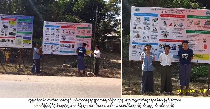 လူမှုဝန်ထမ်း၊ ကယ်ဆယ်ရေးနှင့် ပြန်လည်နေရာချထားရေးဝန်ကြီးဌာန၊ ဘေးအန္တရာယ်ဆိုင်ရာစီမံခန့်ခွဲမှုဦးစီး ဌာန၊ မြောင်းမြခရိုင်ဦးစီးမှူးရုံးမှတာဝန်ရှိသူများသည် (၃၁-၁-၂၀၂၀) ရက်နေ့တွင် မြောင်းမြမြို့နယ်၊ ရန်ကုန်-မြောင်းမြ-လပွတ္တာ အဝေးပြေးလမ်းမ၊ မီတာ(၄၀၀)ကားဝန်းအနီး၌ မီးဘေးအန္တရာယ်ဆိုင်ရာအသိပညာပေး ဆိုင်းဘုတ် စိုက်ထူခဲ့ပါကြောင်း သတင်းရရှိပါသည်။