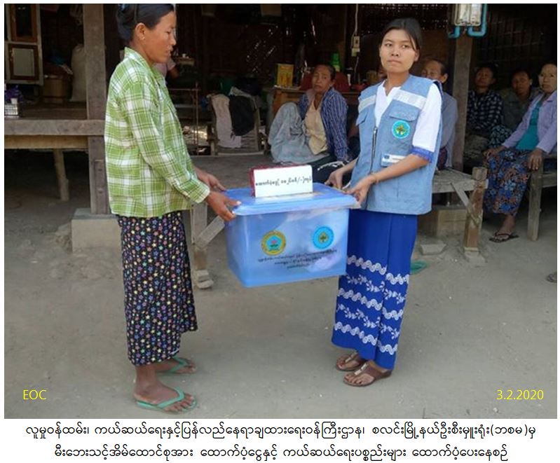 လူမှုဝန်ထမ်း၊ ကယ်ဆယ်ရေးနှင့်ပြန်လည်နေရာချထားရေးဝန်ကြီးဌာန၊ ဘေးအန္တရာယ်ဆိုင်ရာစီမံခန့်ခွဲမှုဦးစီးဌာန၊ စလင်းမြို့နယ်ဦးစီးမှူးရုံးမှ တာဝန်ရှိသူများသည် စလင်းမြို့နယ်၊ နတ်တပ်ကျေးရွာအုပ်စု၊ နတ်တပ်ကျေးရွာတွင် (၂-၂-၂၀၂၀)ရက်နေ့၌ ဖြစ်ပွားခဲ့သော မီးဘေးကြောင့် မီးဘေးသင့်အိမ်ခြေ(၁)လုံး၊ အိမ်ထောင်စု(၁)စုတို့အတွက် အိမ်ဆောက်ပစ္စည်းဖိုး(၁၀၀,၀၀ဝိ/-)၊ လူဦးရေ(၆)ဦးအတွက် ဆန်ရိက္ခါ(၇)ရက်စာ (၁၂,၆၀ဝိ/-)ကျပ်၊ စုစုပေါင်းထောက်ပံ့ငွေ(၁၁၂,၆၀ဝိ/-)ကျပ်နှင့် ကယ်ဆယ်ရေးပစ္စည်း(၁၆)မျိုး အိမ်ထောင်စု(၁)စုစာတို့အား (၃-၂-၂၀၂၀)ရက်နေ့ (၁၄:၀၀)အချိန်တွင် ဘေးသင့်ပြည်သူများလက်ဝယ်အရောက် သွားရောက်ထောက်ပံ့ပေးအပ်ခဲ့ကြောင်း သတင်းရရှိပါသည်။