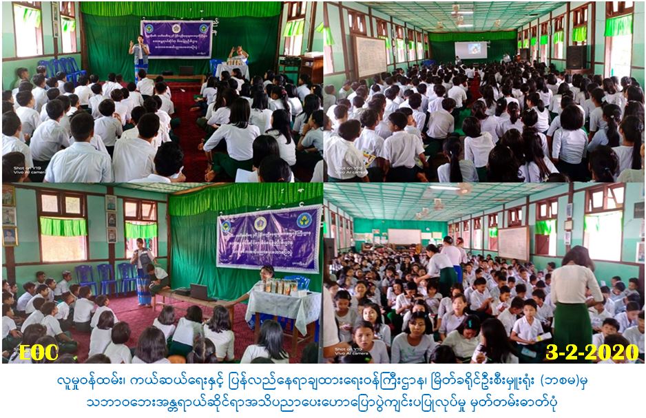 လူမှုဝန်ထမ်း၊ ကယ်ဆယ်ရေးနှင့်ပြန်လည်နေရာချထားရေးဝန်ကြီးဌာန၊ ဘေးအန္တရာယ်ဆိုင်ရာ စီမံခန့်ခွဲမှုဦးစီးဌာန၊ မြိတ်ခရိုင်ဦးစီးမှူးရုံးမှ တာဝန်ရှိသူများသည် (၃-၂-၂၀၂၀)ရက်နေ့တွင် ပုလောမြို့နယ်၊ ရှပ်ပုံ အ.ထ.က၌ ကျောင်းသား/ကျောင်းသူ ဆရာမအင်အား စုစုပေါင်း (၄၀၀)ဦးအား သဘာဝဘေးနှင့်ပတ်သက်၍ ဆောင်ရန်/ရှောင်ရန်များဟောပြောခြင်း၊ သဘာဝဘေးအသိပညာပေး ဗီဒီယိုပြသခြင်း၊ လက်ကမ်းစာစောင်များဝေငှခြင်းတို့ကိုဆောင်ရွက်ခဲ့ပြီး ဘောပင်အချောင်း(၄၀၀) အား လက်ဆောင်ပေးခဲ့ပါကြောင်း သတင်းရရှိပါသည်။