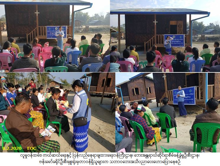 လူမှုဝန်ထမ်း၊ ကယ်ဆယ်ရေးနှင့် ပြန်လည်နေရာချထားရေးဝန်ကြီးဌာန၊ ဘေးအန္တရာယ်ဆိုင်ရာစီမံခန့်ခွဲမှုဦးစီး ဌာန၊ ဗန်းမော်ခရိုင်ဦးစီးမှူးရုံးမှတာဝန်ရှိသူများသည် (၈-၂-၂၀၂၀)ရက်နေ့ (၀၈:၁၅)နာရီ အချိန်မှ (၀၉:၁၅)နာရီ အချိန်ထိ မိုးမောက်မံပုံ(RC) ပြောင်းရွှေ့မိသားစုအိမ်ရာ၌ ငလျင်ဘေး၊ မိုးကြိုးဘေး၊ မီးဘေး၊ မုန်တိုင်းဘေး၊ ရေဘေး၊ မြေပြိုဘေးများနှင့်စပ်လျဉ်း၍ အသိပညာပေးဟောပြောပွဲကို ကျင်းပပြုလုပ်ခဲ့ရာ ပြောင်းရွှေ့ မိသားစုများနှင့် (Camp)အတွင်းနေထိုင်သူ စုစုပေါင်းလူဦးရေ(၅၀)ဦးခန့်တက်ရောက်ခဲ့ပြီး တက်ရောက်လာ သူများအား သဘာဝဘေးအသိပညာပေးလက်ကမ်းစာစောင်များ ဖြန့်ဝေခဲ့ပါကြောင်း သတင်းရရှိပါသည်။