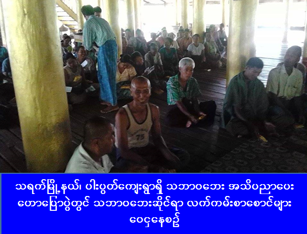(၁-၆-၂၀၁၆) ရက်နေ့တွင် ကယ်ဆယ်ရေးနှင့် ပြန်လည်နေရာချထားရေး ဦးစီးဌာန၊ သရက်ခရိုင်ဦးစီးမှူးရုံးမှ တာဝန်ရှိသူများသည် သရက်မြို့နယ်၊ ပါးပွတ်ကျေးရွာ၌ သဘာဝဘေး အသိပညာပေးဆွေးနွေးဟောပြောပွဲ ပြုလုပ်ခဲ့ရာ လူဦးရေ (၁၁၅) ဦးတက်ရောက်ခဲ့ပြီး အဆိုပါဟောပြောပွဲတွင် သဘာဝဘေး အန္တရာယ်ဆိုင်ရာ လက်ကမ်းစာစောင်နှင့် ခေါက်ဆွဲခြောက်ထုပ်များ ဝေငှပေးခဲ့ကြောင်း သိရှိရပါသည်။