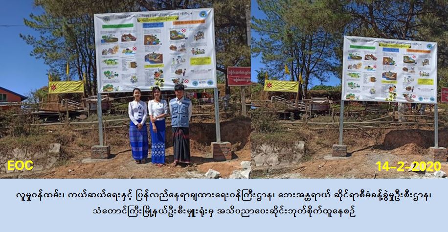 လူမှုဝန်ထမ်း၊ ကယ်ဆယ်ရေးနှင့် ပြန်လည်နေရာချထားရေးဝန်ကြီးဌာန၊ ဘေးအန္တရာယ် ဆိုင်ရာစီမံခန့်ခွဲမှုဦးစီးဌာန၊ သံတောင်ကြီးမြို့နယ်ဦးစီးမှူးရုံးမှ တာဝန်ရှိသူများသည် (၁၄-၂-၂၀၂၀) ရက်နေ့၊ နေ့လည် (၁၃:၀၀) နာရီအချိန်တွင် သံတောင်ကြီးမြို့၊ အမှတ် (၄) ရပ်ကွက်၊ ဗဟိုလမ်းမကြီးဘေးတွင် မြေပြိုဘေးအန္တရာယ်ဆိုင်ရာ အသိပညာပေးဆိုင်းဘုတ်အား စိုက်ထူခဲ့ပါကြောင်း သတင်းရရှိပါသည်။