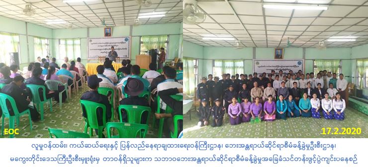 လူမှုဝန်ထမ်း၊ ကယ်ဆယ်ရေးနှင့် ပြန်လည်နေရာချထားရေးဝန်ကြီးဌာန၊ ဘေးအန္တရာယ်ဆိုင်ရာစီမံခန့်ခွဲမှုဦးစီးဌာန၊ မကွေးတိုင်းဒေသကြီးဦးစီးမှူးရုံးမှ တာဝန်ရှိသူများသည် သဘာဝဘေး အန္တရာယ်ဆိုင်ရာစီမံခန့်ခွဲမှုအခြေခံသင်တန်းအား မကွေးမြို့နယ်မှဌာနဆိုင်ရာ (၁၅)ဦး၊ သင်တန်း သား/သူ (၅၀)ဦးဖြင့် မကွေးမြို့နယ်၊ ပြန်ကြားရေးနှင့် ပြည်သူ့ဆက်ဆံရေးဦးစီးဌာန၊ အစည်းအဝေးခန်းမ၌ ဖွင့်လှစ်ခဲ့ရာ ဘေးအန္တရာယ်ဆိုင်ရာစီမံခန့်ခွဲမှုဦးစီးဌာန၊ မကွေးတိုင်းဒေသကြီးဦးစီးမှူး သင်တန်းဖွင့်အမှာ စကားပြောကြားခဲ့ပါသည်။ အဆိုပါသင်တန်းအား (၁၇-၂-၂၀၂၀) ရက်နေ့မှ (၂၁-၂-၂၀၂၀) ရက်နေ့ထိ (၅) ရက်တာ ဖွင့်လှစ်သွားမည်ဖြစ်ပါကြောင်း သတင်းရရှိပါသည်။