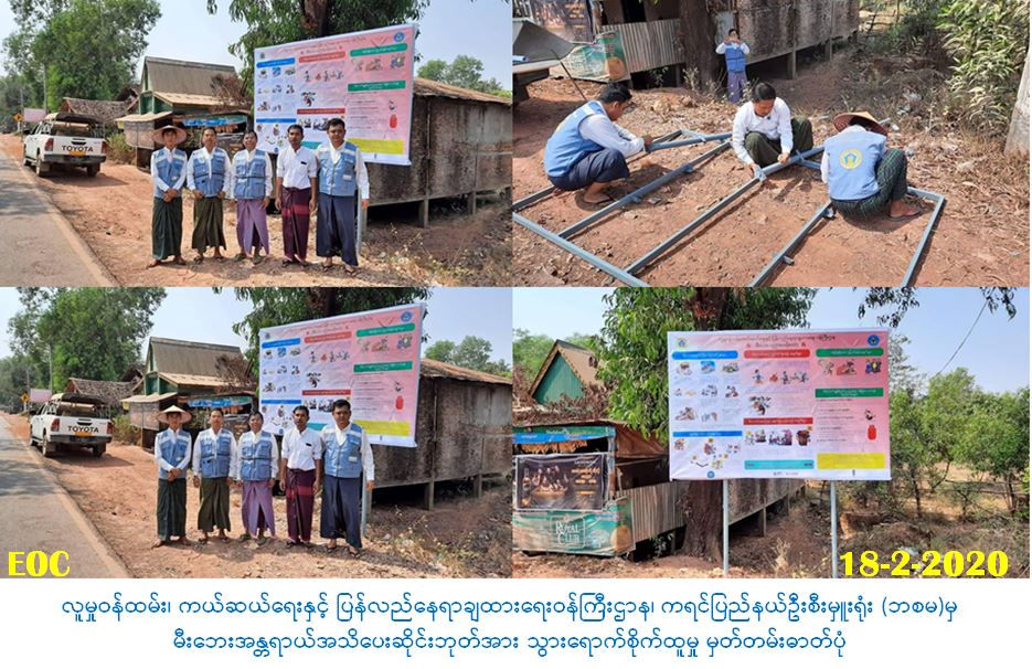 လူမှုဝန်ထမ်း၊ ကယ်ဆယ်ရေးနှင့်ပြန်လည်နေရာချထားရေးဝန်ကြီးဌာန၊ ဘေးအန္တရာယ်ဆိုင်ရာစီမံ ခန့်ခွဲမှုဦးစီးဌာန၊ ကရင်ပြည်နယ်ဦးစီးမှူးရုံးမှ တာဝန်ရှိသူများသည် (၁၈-၂-၂၀၂၀)ရက်နေ့တွင် ဘားအံမြို့၊ ဇာသပြင်ကျေးရွာအုပ်စု၊ ကျားကလေးလမ်းဆုံ၌ မီးဘေးအန္တရာယ်အသိပေးဆိုင်းဘုတ် အားသွားရောက်စိုက်ထူခဲ့ပါကြောင်း သတင်းရရှိပါသည်။
